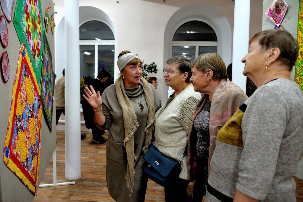 Карины, вышитые художественной гладью, соседствуют с панно, выполненными в техниках «Пиксели», «Колодец», «Витражи». Кажется, что работы мастериц кружатся в веселом праздничном танце – «Ситцевом хороводе». Работы яркие, красочные. Для многих открытие выставки стало откровением. Занимаясь тем или иным видом творчества, мы никогда не задумываемся о его истории. И лоскутное шитье, и вышивка имеют глубокие корни, даже королевские особы и аристократы наравне с крестьянами занимались рукоделием.