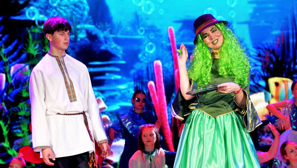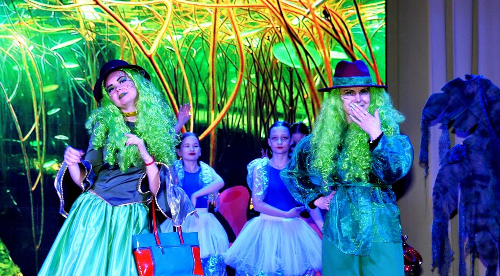 Путешествуя по волшебному миру, Ваня и Василиса попадают на болото, где знакомятся с его необычными обитателями - кикиморами Тиной (Софья Расторгуева) и Трясиной (Ирина Табанюк), а также с хозяином болот - Водяным (1 состав - Арсений Иванов, 2 состав - Семён Котов). В этом эпизоде важную роль играют танцевальные коллективы, которые представлены не как отдельные номера. Это полноценная часть сценического действия. Артисты воплотили образы рыбок и медуз, выступая как персонажи спектакля и живые декорации, создавая атмосферу подводного царства.