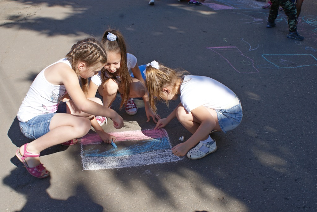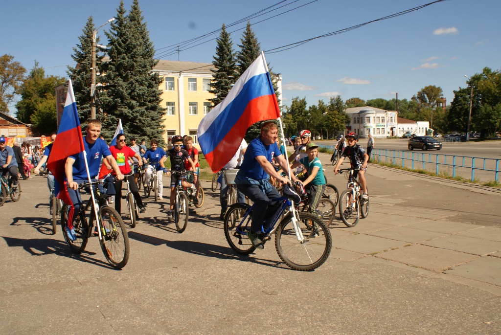 Подойдя к Дому культуры, ребята увидели взрослых велосипедистов. Немного познакомившись с цветами флага и назначением, услышав приветственные слова заместителя главы города Анны Александровны Единовой и председателя Совета ветеранов Дины Тимофеевны Агеевой, младшие участники мероприятия перешли к городскому конкурсу рисунков на асфальте на тему: «Три полоски флага – это неспроста». Колонна велосипедистов, под руководством Сергея Валентиновича Столбова отправились в парк «Жилкооперация» для торжественного открытия волейбольной площадки. Гостями праздника были жители дома-интерната, которые присудили лучшим рисункам специальные призы. Партия «Единая Россия» оказала очень большую поддержку в подготовке к празднованию «Дня российского флага».