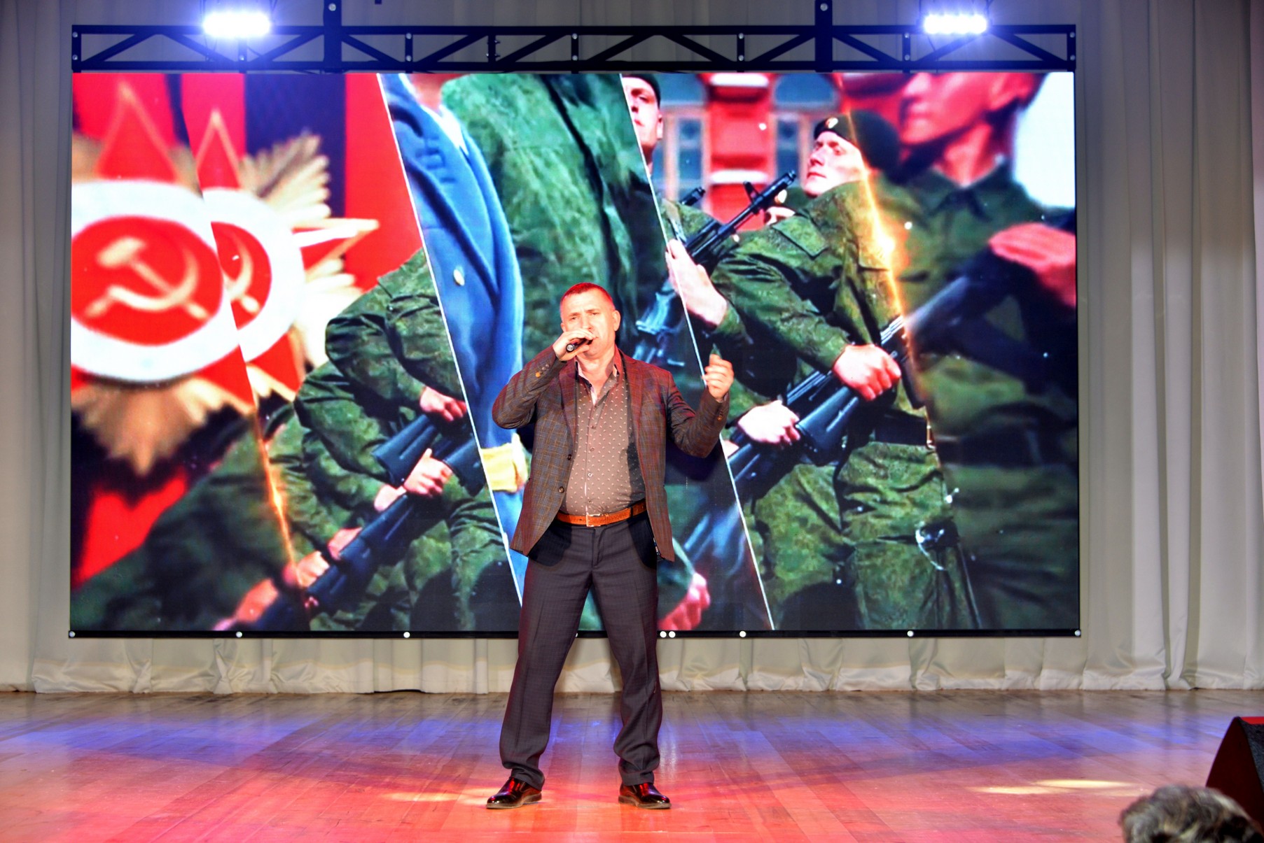 Владимир Кузнецов, Ирина Табанюк и Александр Дубровкин исполнили патриотические песни о героизме нашей армии. Собинский поэт Ирина Петрова написала текст песни "Вас позвала страна", а Александр создал великолепную аранжировку для исполнения Владимиром. Получившийся номер не оставил равнодушным никого в зале, а глава города Собинки Елена Карпова вышла на сцену во время исполнения в знак поддержки не только собинских творцов, но и участников операции. Елена Геннадьевна говорила в этот вечер и о своих чувствах и переживаниях, которые она испытывала во время посещения зон военных действий, госпиталей, доставляя гуманитарную помощь бойцам, а также представила видеоролик с кадрами из личного архива.