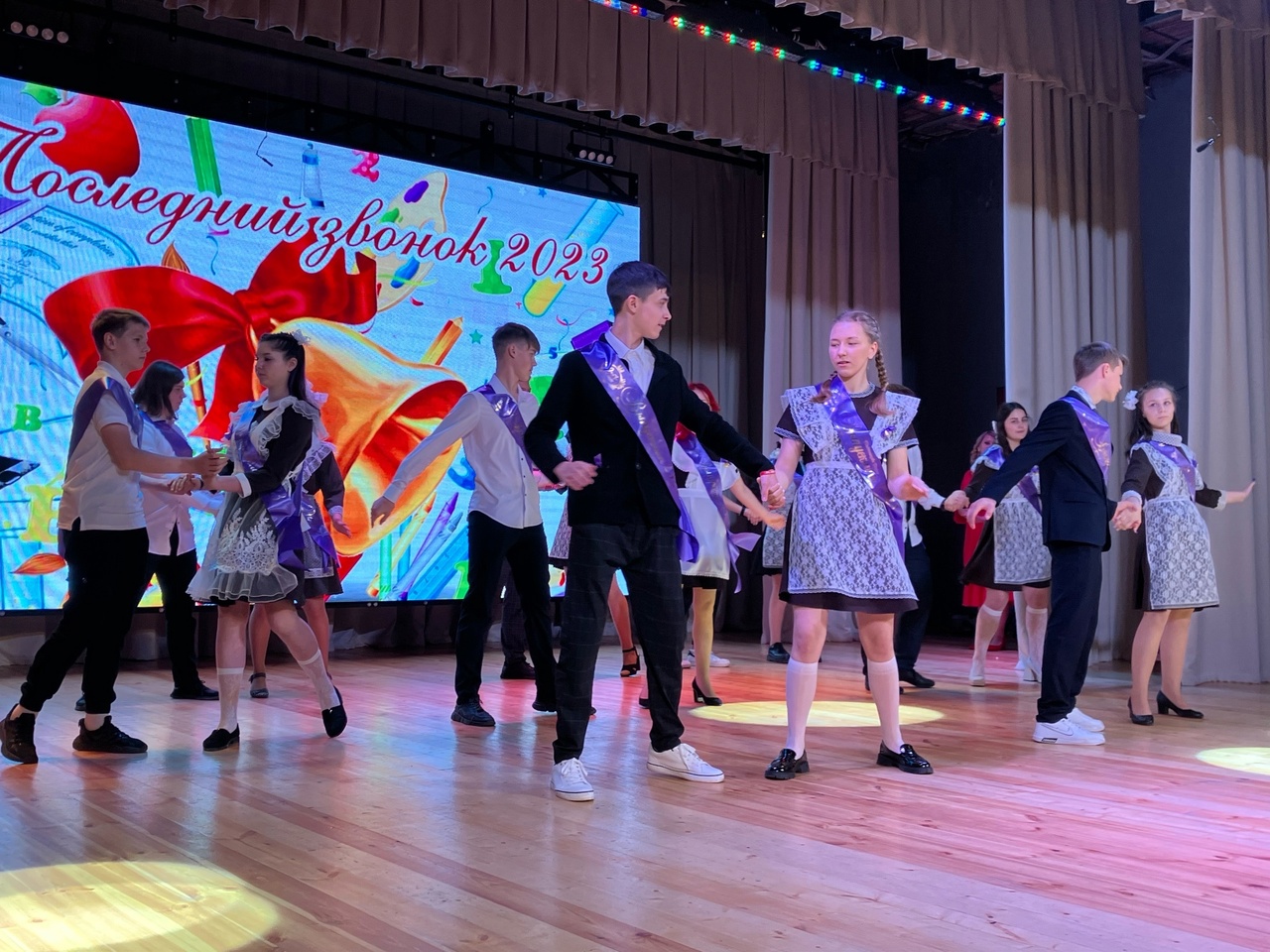 По традиции, городской Последний звонок готовят сами выпускники. Поэтому самые активные стали ведущими этого праздничного события. Трогательные слова сменялись вальсами выпускников МБОУ СОШ № 4 и выпускников с педагогами МБОУ ООШ № 2, а также юмористическими сценками из школьной жизни в исполнении театрального кружка Центра культуры и досуга «Балаган». Выступление классных руководителей вызвало бурю эмоций, а выступление первоклассников – шквал аплодисментов и смеха.
