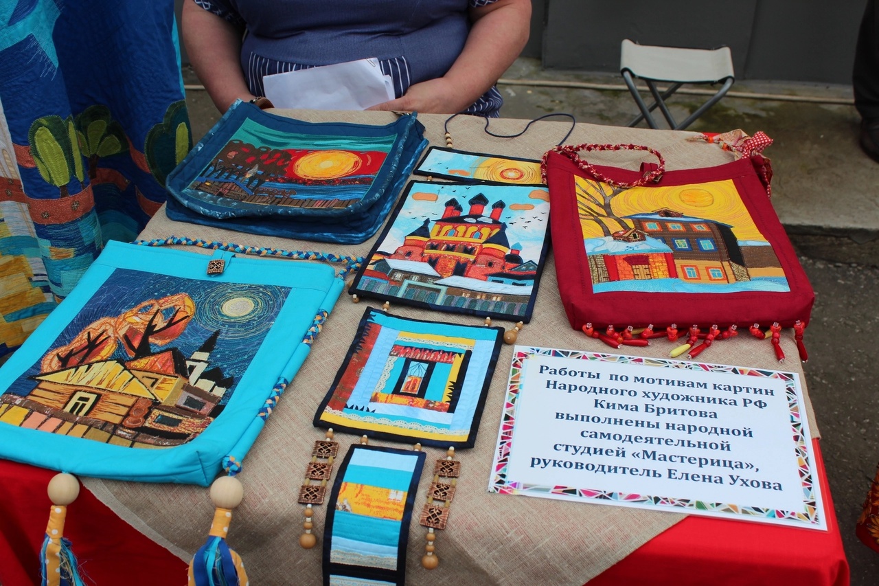 В маленьком скверике на улице Георгиевская раскинулась большая выставка-ярмарка декоративно-прикладного искусства с участием представителей разных национальностей: русских, мордвы, армян, башкир, евреев, казаков, таджиков... Её небольшой, но значимой частью стали работы народной студии «Мастерица» (руководитель Елена Ухова) - «Костюмы и аксессуары, выполненные в технике лоскутного шитья, по мотивам живописных полотен Кима Бритова «Подарю людям солнце!» Продолжился Единый День фольклора ремесленно-творческой ярмаркой «Щедра талантами родная сторона», на которой творческие коллективы ЦКД достойно представили концертную программу «На одном дыхании».