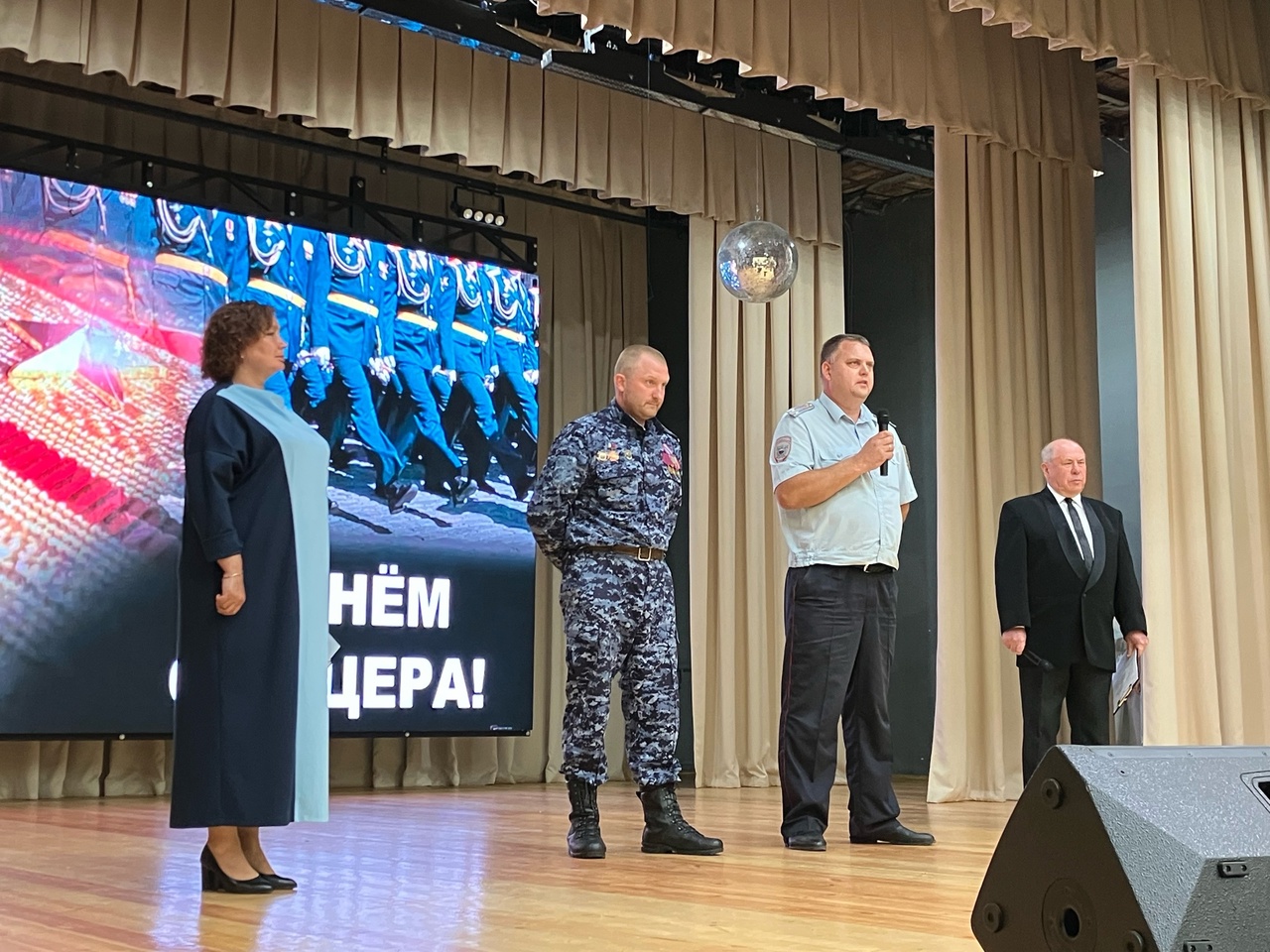 Именно им, бойцам и настоящим мужчинам, был посвящён концерт «Есть такая профессия – Родину защищать!», приуроченный к Дню офицера России. Теплые слова в адрес военнослужащих прозвучали из уст главы города Е.Г.Карповой, председателя городского совета депутатов К.Д.Федорова и председателя совета ветеранов Т.С.Тарасовой. Наполнили поздравительные речи торжественностью и мужеством руководитель военно-патриотического клуба «Витязь» О.М.Чурсин и ВРИО заместителя начальника полиции по охране общественного порядка подполковник полиции С.А.Воронов.