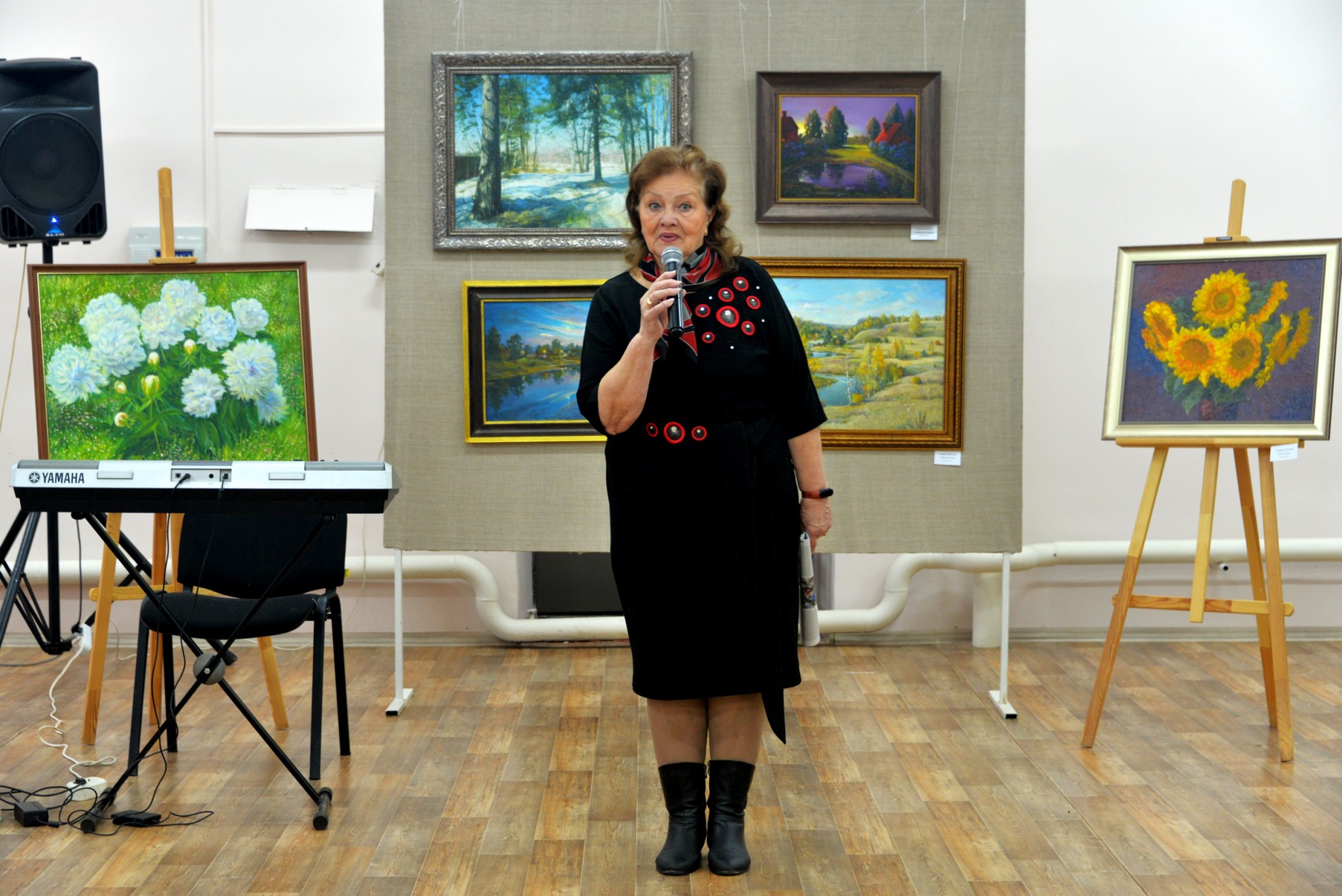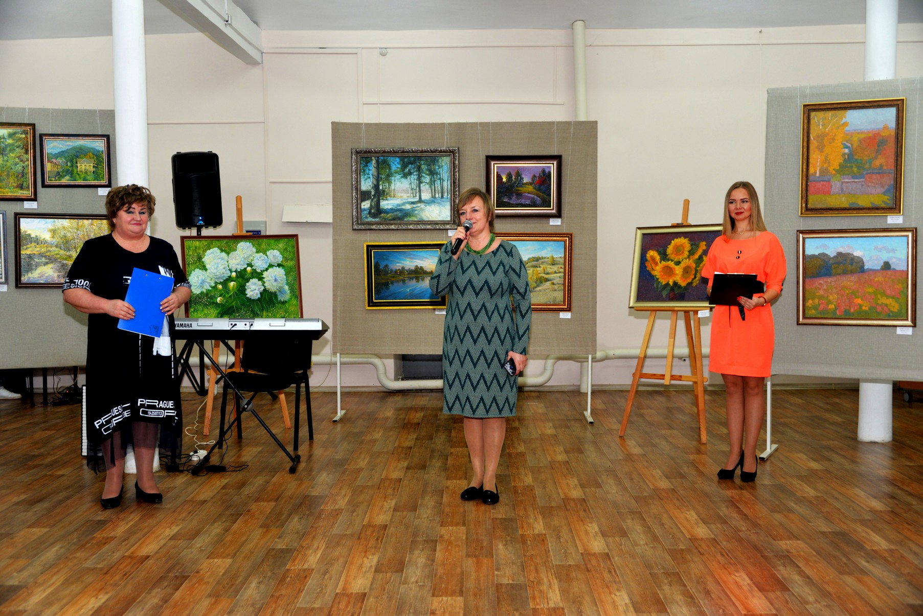 В этом году осенняя выставка очень «урожайная» - 75 картин. Это живопись, графика, батик холодный и горячий, рисунок. Художники пишут маслом, акварелью, тушью, пастелью, акрилом… А ещё - они пишут душой! Разное эмоциональное наполнение, цветовые решения, подход к замыслу, энергетический заряд… Всех объединяет одно: желание подарить нам, зрителям, немного красоты.