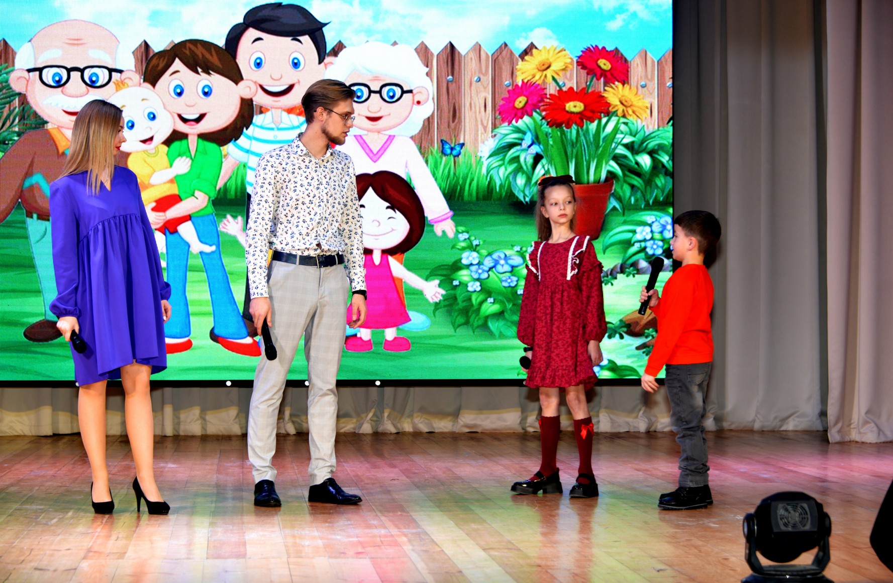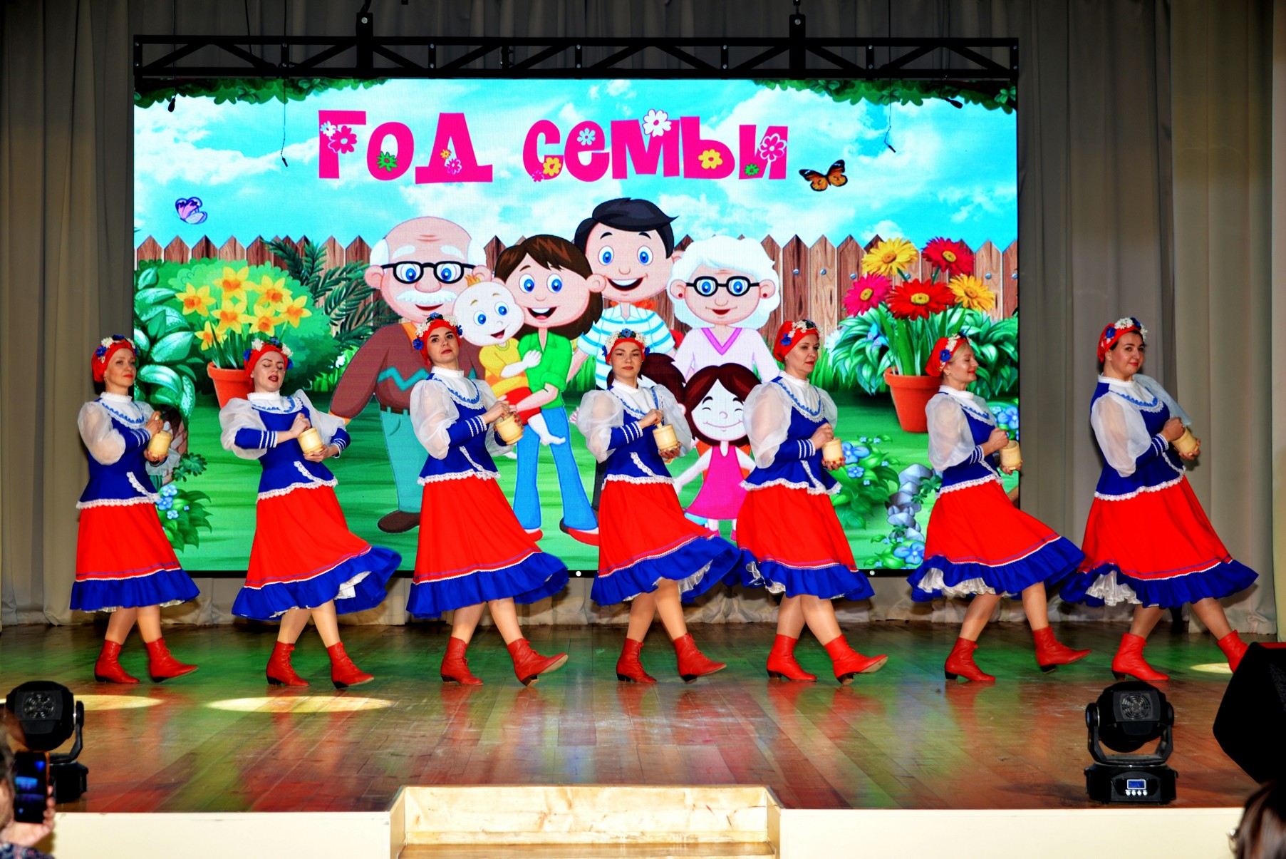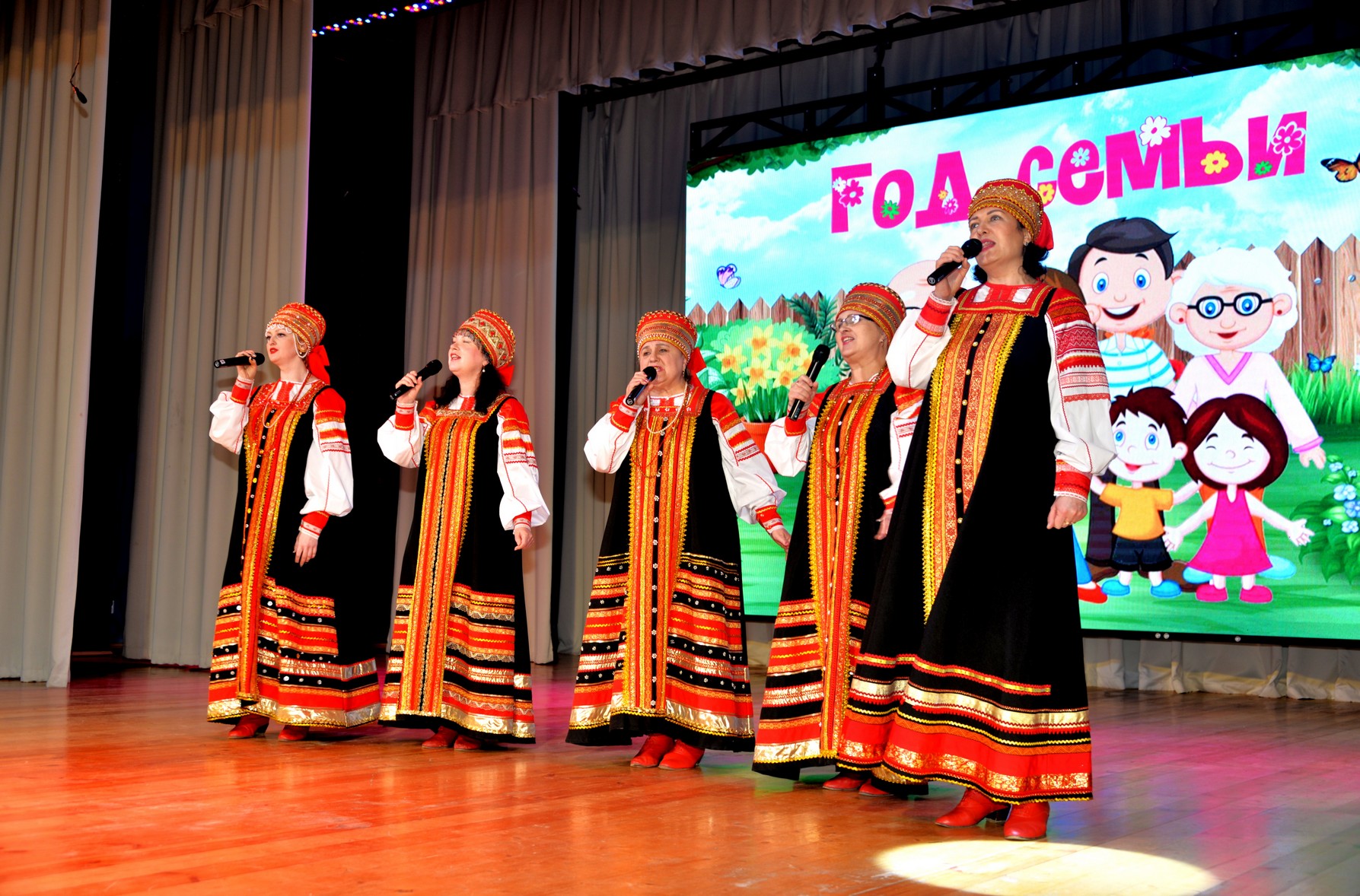 Праздник продолжился в душевной семейной обстановке. Ведущие трех поколений рассказывали зрителю о семейных ценностях и традициях, и все это сопровождалось прекрасными и яркими семейными номерами: дуэты семейной пары Тамары и Станислав Тарасовых, взрослых и детей Ирины и дочери Алисы Табанюк, Виктора и Марии Еремеевых, Марины и Марии Чечуро, трио Татьяны Водневой с ее детьми Людмилой и Дмитрием, трио Натальи, Софьи и Ксении Кузьминых, красивые танцевальные номера мамы Светланы и сына Данила Сидоровых, Александры Чайка с сыновьями Павлом и Вячеславом. А танцевальные номера ансамблей «Эврика», «Экспресиия» и выступление вокального хорового коллектива «Россияночка» добавили в программу ярких красок. Завершился концерт песней детей и родителей вокально танцевального коллектива «Куликово болото».