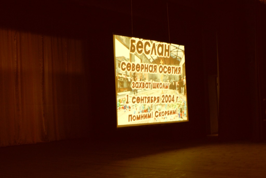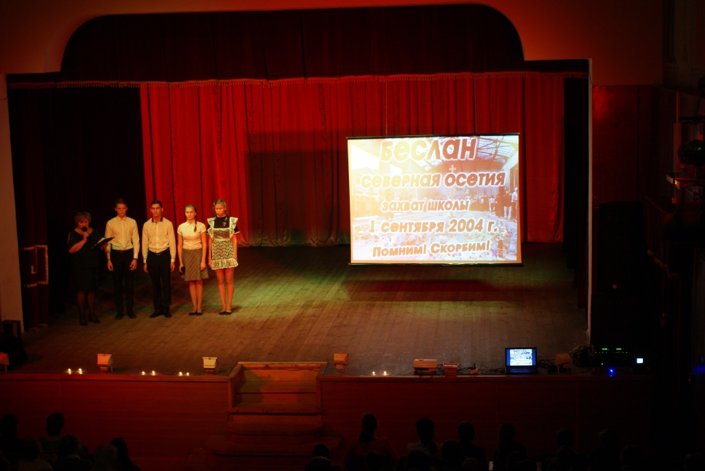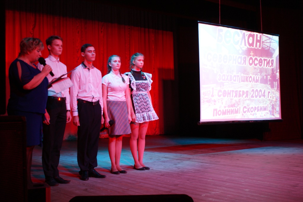 Мероприятие было наполнено слезами и переживаниями. 3 сентября 2015 года композицию показали три раза для разновозрастной публики и каждый раз зал был полон. Полон не только количественно, но и слезами, обидами за таких нелюдей, которые могут себе дать право оставить людей без самого важного – жизни. Дети, закрывая глаза, дабы не видеть кадры представленных видеороликов, плакали, переживали, скорбили. Один юноша обнял своего друга, сидящего рядом, и что-то потихоньку шептал ему на ухо. Какие слова он говорил? О том, что он не хочет его потерять или как он ценит его и жизнь, которую подарили ему родители? Неизвестно. Но одно можно сказать точно – зрители были с душой, они еще больше возненавидели тех, кто погубил жизнь 329 человек.
