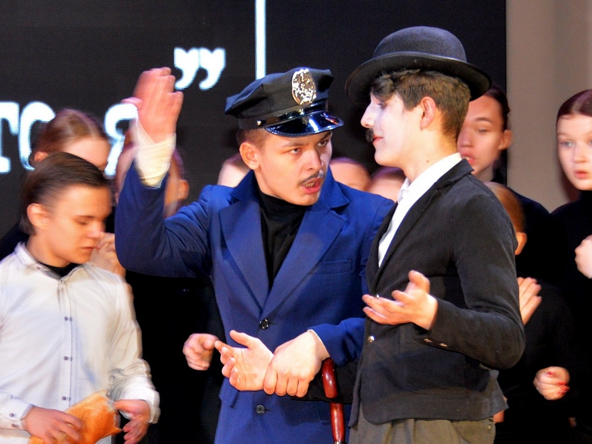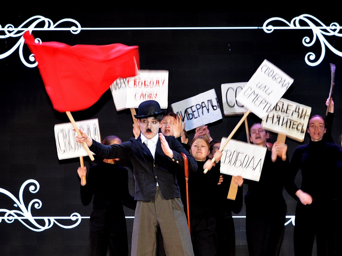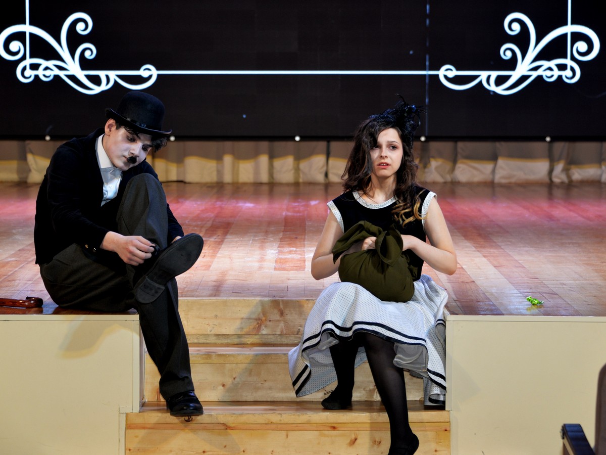 Главную роль бродяжки Чарли сыграл Дёмин Никита, а его спутницу Соловьёва Ксения. Спектакль получился смешным. Зрители хохотали несмотря на то, что сцены с Чаплиным отыгрывались полностью без слов. В конце спектакля зритель проронил слезу, так как концовка заставляет сквозь призму гротеска, юмора и буффонады задуматься о смысле жизни.