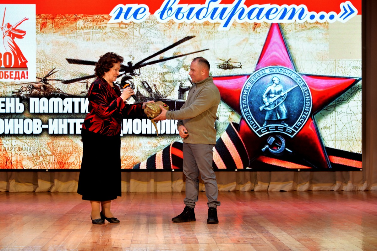Самым ярким моментом было выступление участника боевых действий в Афганистане Сергея Анатольевича Васильева. Со сцены он с дрожью в голосе поздравил с праздником сидящих в зале сослуживцев, пожелал им крепкого здоровья, а всем зрителям мирного неба над головой.