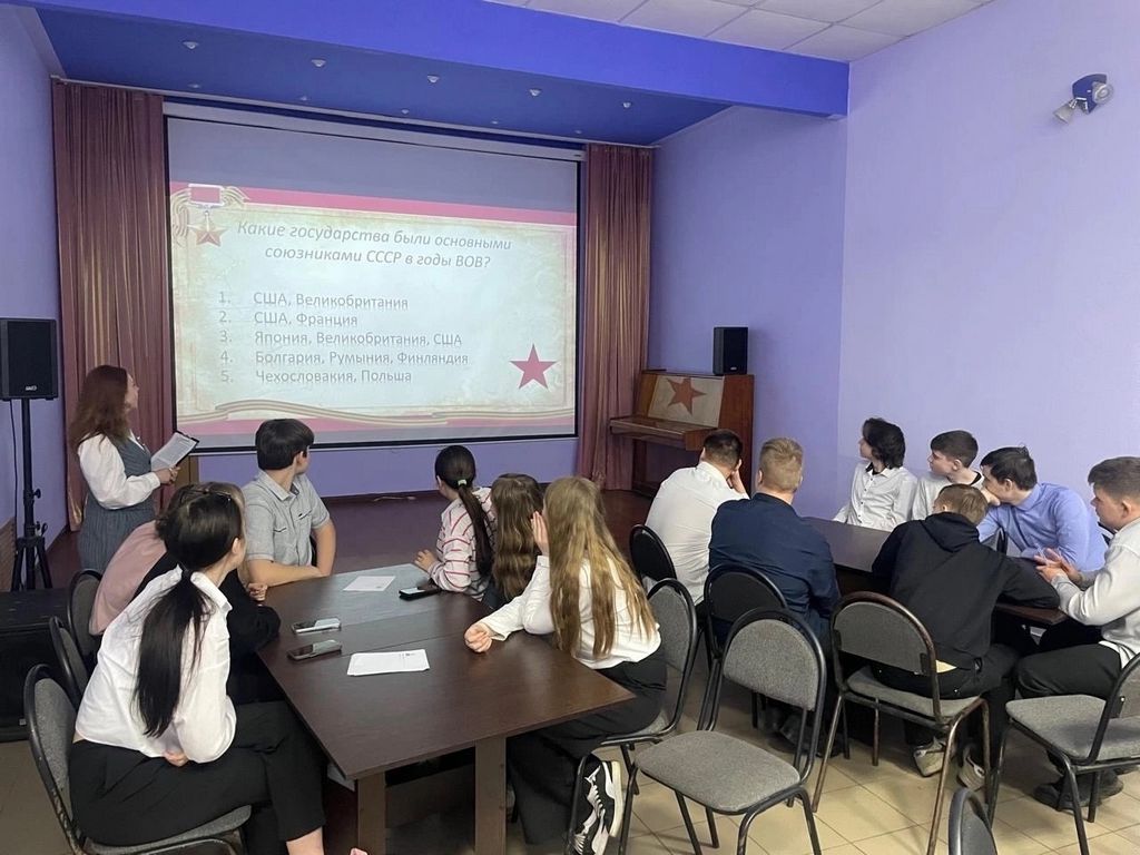 Среди старшеклассников города прошла серия игр «От 41 до 45». Вместе с героями и полководцами ребята «сражались на разных фронтах Великой Отечественной войны» - в 7-ми раундах исторических событий тех времен: «Кто? Где? Когда», «Даты», «Битвы», «Летопись ВОВ», «Герои и полководцы», «Маленькие герои большой войны» и «Кино идет».