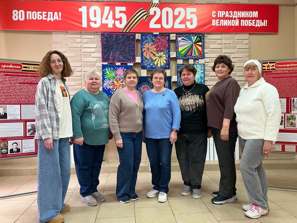 В преддверии 80-й годовщины Победы в Великой Отечественной войне рукодельницы народной самодеятельной студии «Мастерица» создали лоскутное панно «Салют Победы». В окружение «салютов» органично вписан центральный блок с изображением солдата, который держит на плече маленькую девочку. По задумке Елены Тарасовны Уховой, выполнившей эту часть коллективной работы, воин и девочка - это собирательные образы советского солдата-победителя и юного российского поколения, связанные исторической памятью, преемственностью жизненных ценностей.