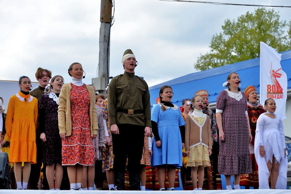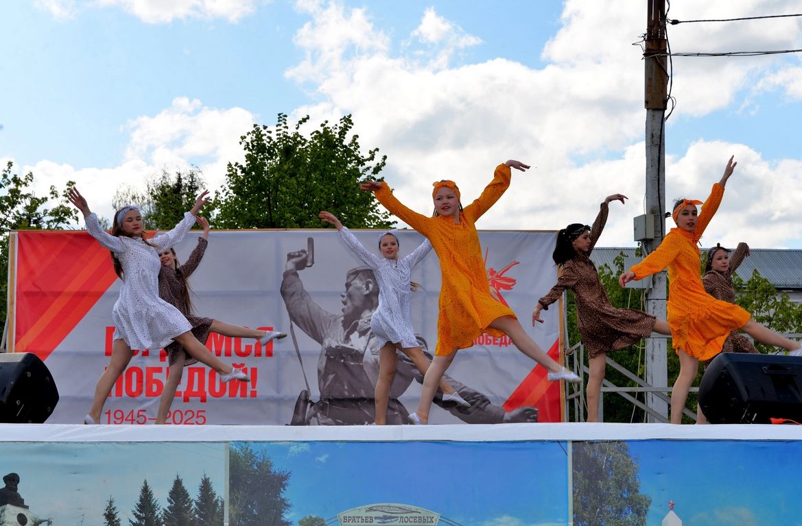 На Центральной площади в теплой атмосфере единства поколений, восхищения подвигом предков и благодарности ветеранам прошла праздничная программа «Дню Победы посвящается...» Праздничное событие, наполненное знакомыми с детства песнями военных лет, а также современными композициями, проникновенными стихотворениями и хореографическими номерами, перенесло зрителей в атмосферу героического прошлого нашей страны. Главные герои - Лиза и Сашка – «рассказали» зрителям историю страны от грозного 41-ого до победного 45-ого.