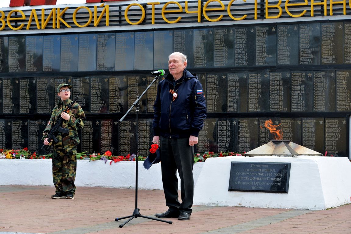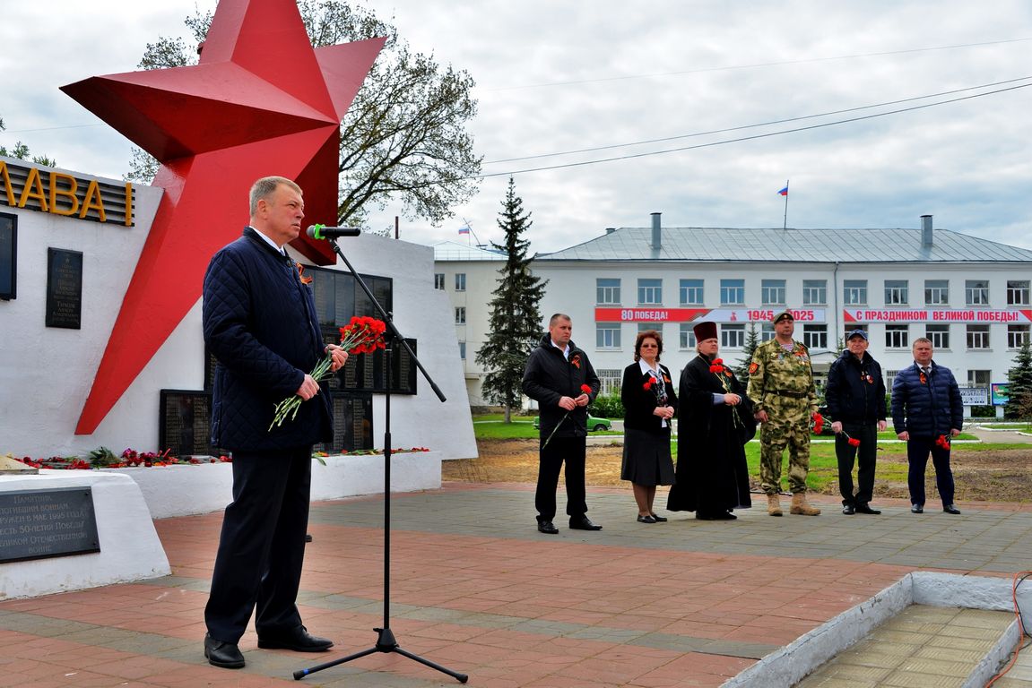 9 Мая в Собинке у мемориала героям-собинцам, погибшим в годы войны, состоялся торжественный митинг, посвященный 80-летию Победы. На торжественном митинге с приветственными словами к присутствующим обратились глава Собинского муниципального округа Александр Всеволодович Разов, военный комиссар Илья Игоревич Алешин, начальник Собинского территориального отдела администрации Собинского муниципального округа Сергей Сергеевич Тимофеев, председатель городского совета ветеранов Тамара Сергеевна Тарасова, Благочинный приходов Собинского церковного округа Владимирской епархии протоирей Виктор Тарасов, руководитель местного отделения организации «Боевое братство» Сергей Анатольевич Васильев и участник специальной военной операции, разведчик 116 отдельной бригады особого назначения Дмитрий Александрович Корнеев. В память о тех, кто отдал свои жизни во имя Победы, была объявлена минута молчания, возложены венки и живые цветы к мемориалу.