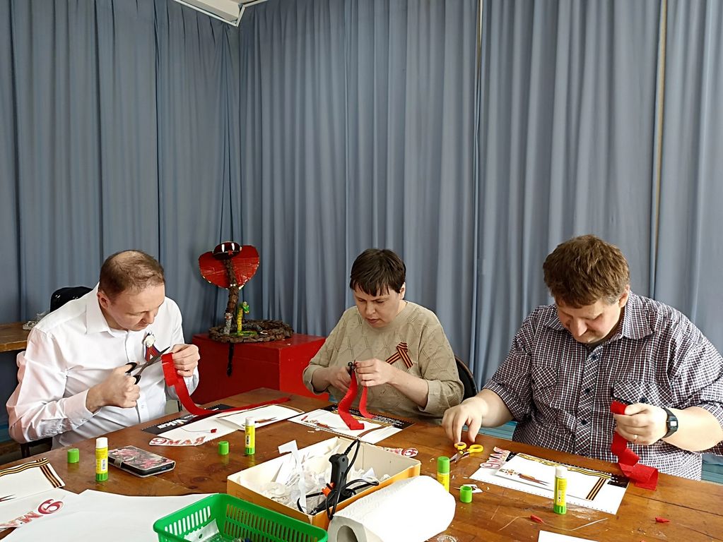 7 мая умельцы Собинского интерната побывали на мастер-классе «Открытка для ветерана». Ребята умело вырезали рисунки с символами Дня Победы и сделали гвоздику из гофрированной бумаги. Каждый участник создал символ памяти своими руками под умелым руководством Светланы Маховой.
