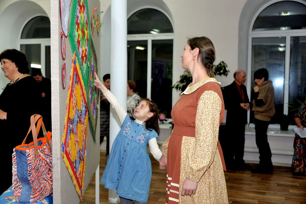 Карины, вышитые художественной гладью, соседствуют с панно, выполненными в техниках «Пиксели», «Колодец», «Витражи». Кажется, что работы мастериц кружатся в веселом праздничном танце – «Ситцевом хороводе». Работы яркие, красочные. Для многих открытие выставки стало откровением. Занимаясь тем или иным видом творчества, мы никогда не задумываемся о его истории. И лоскутное шитье, и вышивка имеют глубокие корни, даже королевские особы и аристократы наравне с крестьянами занимались рукоделием.