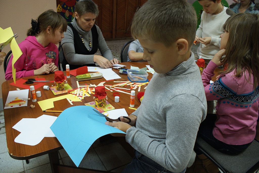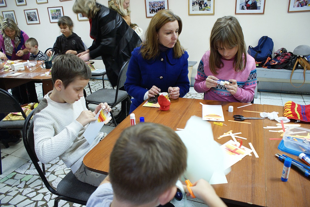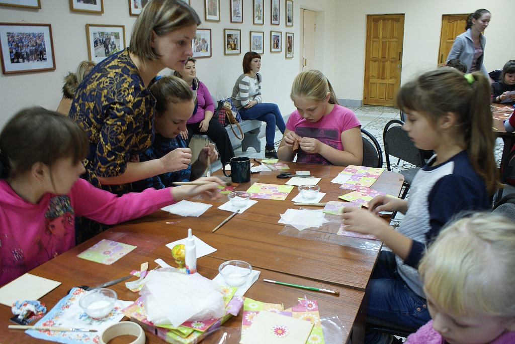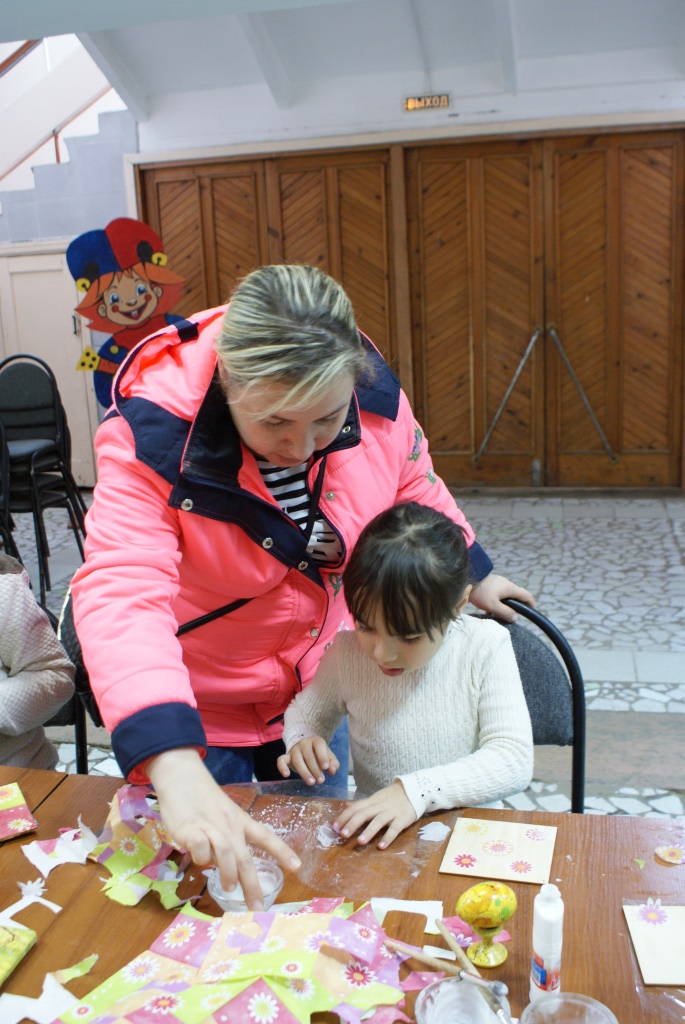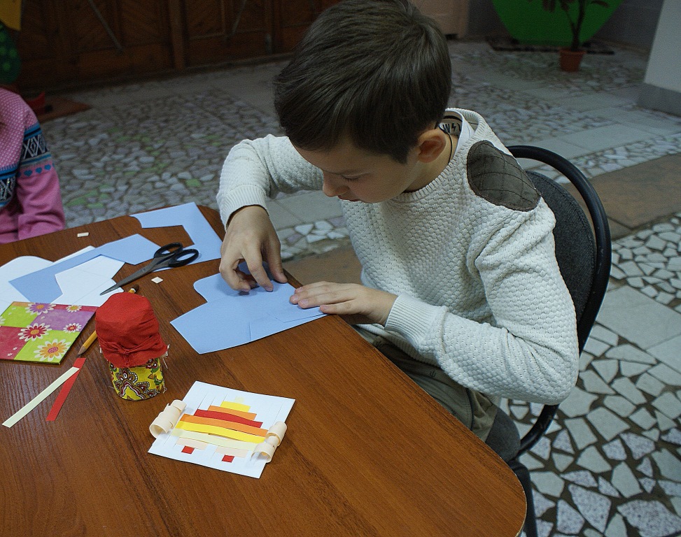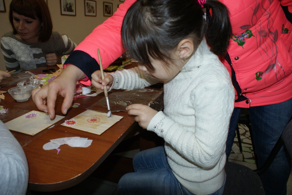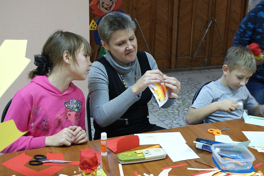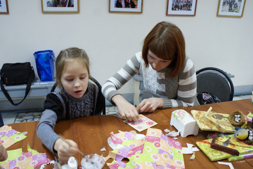 Дети и родители с большим удовольствием занимались бумагопластикой с педагогом и руководителем изостудии «Акварель» Натальей Геннадьевной Колесниковой, а у мастеров декоративно-прикладного искусства и ремесел Владимирской области Натальи Игоревны Соколовой и Ирины Павловны Курбановой познали основы декупажа и изготовили народную куклу «Владимирская столбушка».