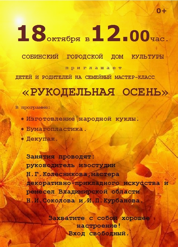 18 октября в 12 часов двери ГДК гостеприимно открылись для семейного мастер-класса «Рукодельная осень».