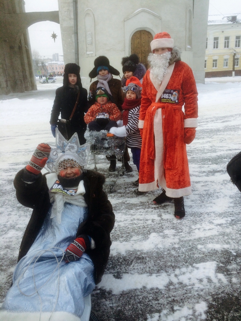С каждым годом горожане все изощреннее подходят к выбору костюма. Все больше становится тех, кто не ограничивается минимальной «дедморозовской» шапкой, а выходит на дистанцию в халате, с накладной бородой и посохом. Не обошлось в этот раз без «семейных» забегов, а один молодой человек даже умудрился прокатить свою бабушку-Снегурочку на импровизированной упряжке. Бежавшие рядом внуки, кстати, тоже в костюмах, громкими выкриками поздравляли всех зрителей с Новым годом. В общем, душевности в праздничном событии с каждым годом все больше.