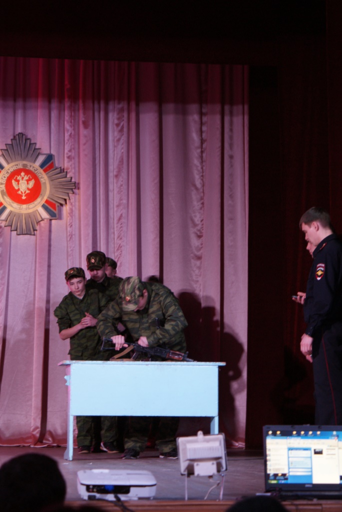 В этом году участие приняли 4 команды: команда «ВИК» - филиал Владимирского индустриального колледжа, команда «Лидер» - Лакинская школа № 1, команда «Родник» - Собинская школа № 4, и «Витязь» - Лакинская школа № 2. Члены жюри: помощник начальника отдела муниципального военного комиссариата Владимирской области по г. Собинке и Собинскому району Дмитриев Игорь Владимирович; заместитель главы города по социальным вопросам Анна Александровна Единова; военнослужащий в отставке, майор Петрушанко Владимир Николаевич; консультант по социальным вопросам администрации г. Собинки Елена Валентиновна Мизелёва; депутат Совета народных депутатов г. Собинки Мухин Вячеслав Николаевич; заслуженный работник культуры Тамара Сергеевна Тарасова. В программе были следующие конкурсы: «визитная карточка»; «смотр строя и песни»; «сборка и разборка автомата Калашникова»; «силовое многоборье»; «медицинский конкурс»; «обед в «полевых» условиях; минутка на шутку»; «видеоролик». Победителями стала команда «Родник», 2 место взяла команда «Витязь», бронзовыми призёрами стала команда «Лидер». Все были награждены кубками (1 место – кубок победителя, 2 и 3 место – соответствующие кубки, и команде «ВИК» был вручён кубок участника)