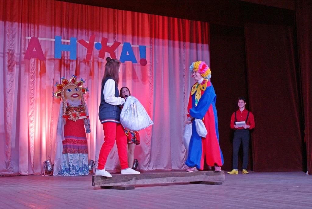 Жюри ушло совещаться, а в это время, ведущие конкурса Татьяна Семеликова и Никита Кудрявцев провели для зрителей русские забавы.