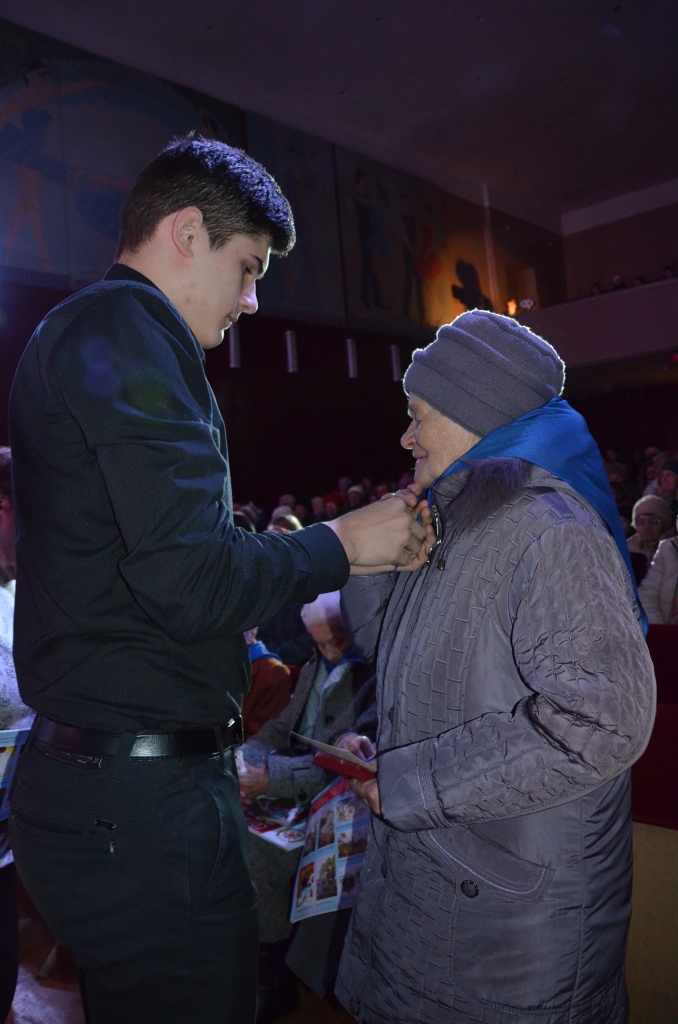 В рамках Акции проводилась торжественная церемония награждения юбилейными медалями «70 лет Победы в Великой Отечественной войне 1941-1945 г.г.». Юбилейные медали и памятные подарки ветеранам вручали: глава города - Е. Г. Карпова и председатель районного и городского Совета ветеранов - Д. Т. Агеева, символ Акции «Синий платочек» дарили учащиеся СОШ №4 г.Собинки.