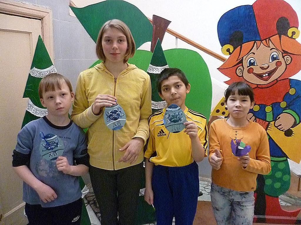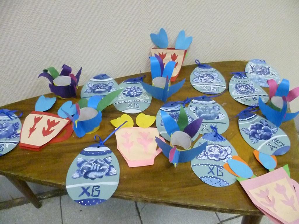 С большой любовью своими руками они изготовили пасхальную подвеску и подставку под яичко, а также весеннюю открытку.