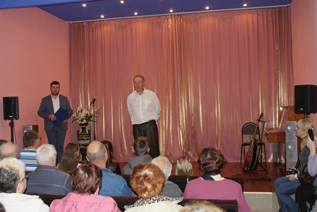 Юрий Викторович Корольков, директор нашего Дома культуры, выразил благодарность художнику за отклик на приглашение и вручил благодарственное письмо от администрации города и памятный подарок - книгу, посвященную развитию города Собинки.