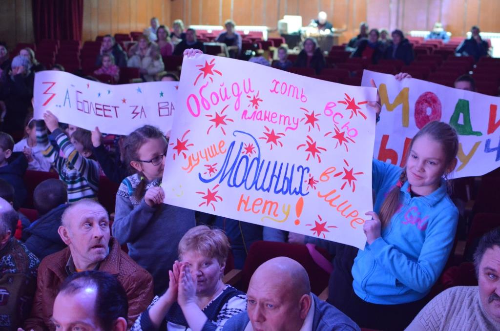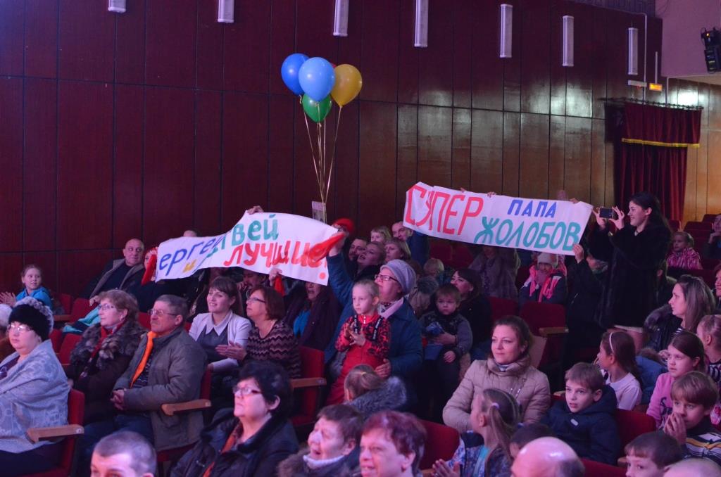 Семья Жолобовых вышла на сцену в полном составе, представила яркую презентацию о своей семье. Жюри сразу отметило единую форму отца и сына.