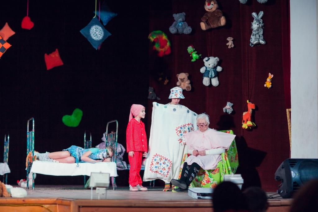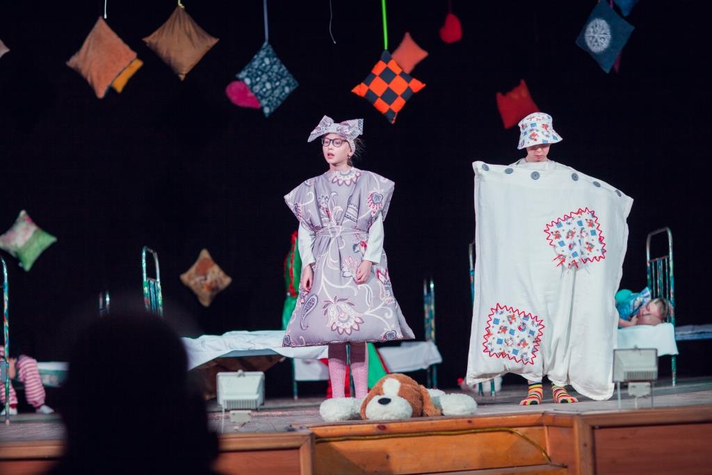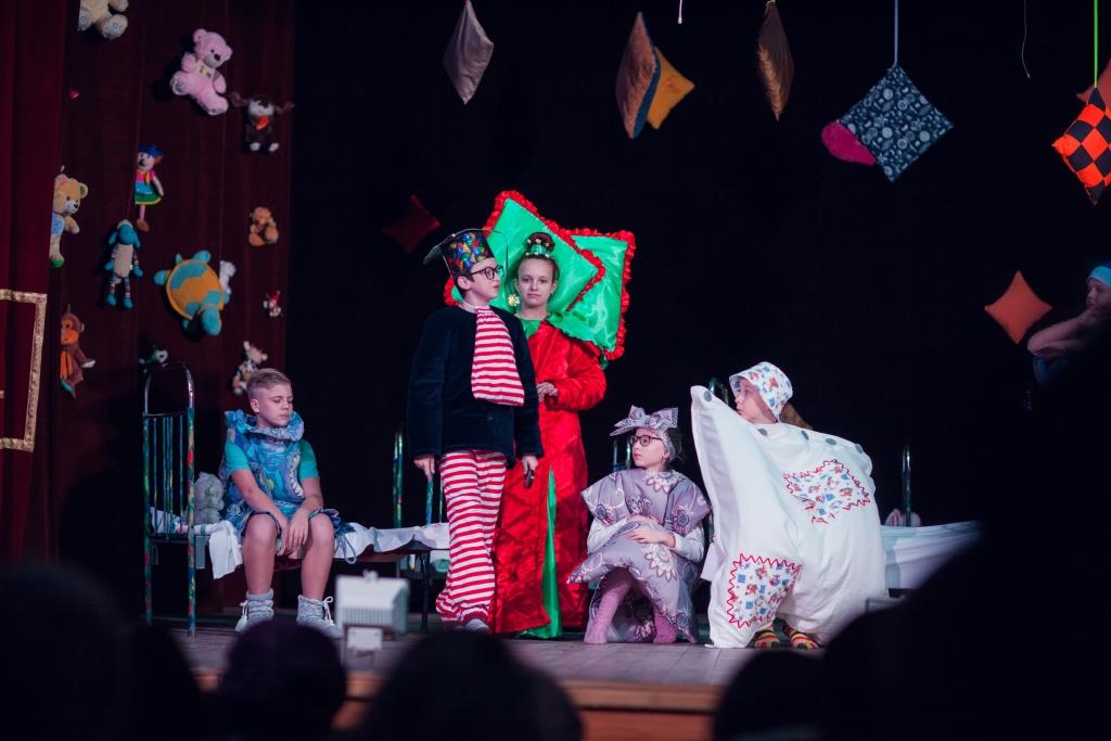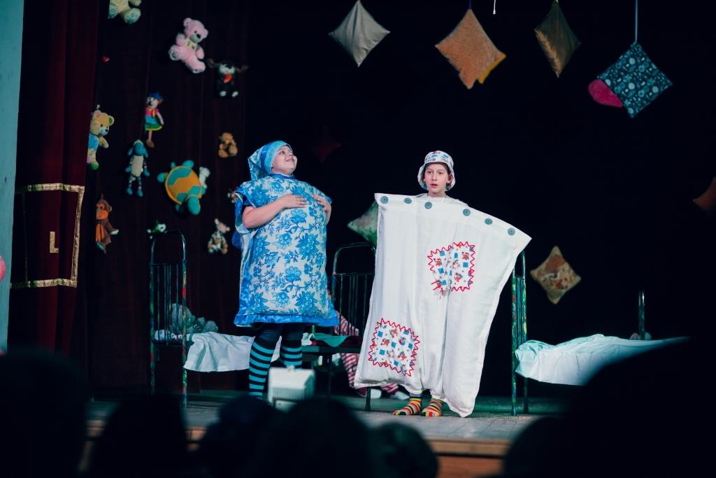 На часах половина шестого. Свет приглушен. Музыка. Началась премьера! «Душа подушек» - сказка о наших перьевых друзьях – подушках. Действие происходит в детском саду. Как только детишки убегают на полдник, подушки просыпаются, и тут начинается все самое интересное. Все подушки набиты пухом и перьями, но вот Гречик – главный герой, которого сыграл Всеволод Уляков, набит гречкой. «Он не такой как все!» - восклицали остальные подушки. Но, несмотря на то, что подушкам нельзя разговаривать с людьми, Гречик находит себе друга Костю, которого сыграл Андрей Корольков, среди детей. Все подушки против дружбы с людьми, ведь когда – то был День большого холода (ДэБэХа) и люди предали их: разорвали и сшили из них большое одеяло, чтобы покрыть крыши домов. Костя часто болеет и у него аллергия на перьевые подушки, а Гречик как никто другой подходит ему для сна и… для дружбы. Сказка заканчивается тем, что родители Кости соглашаются забрать Гречика к себе домой.