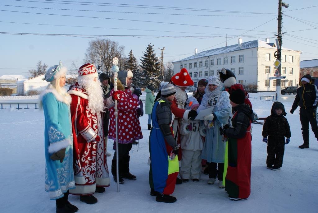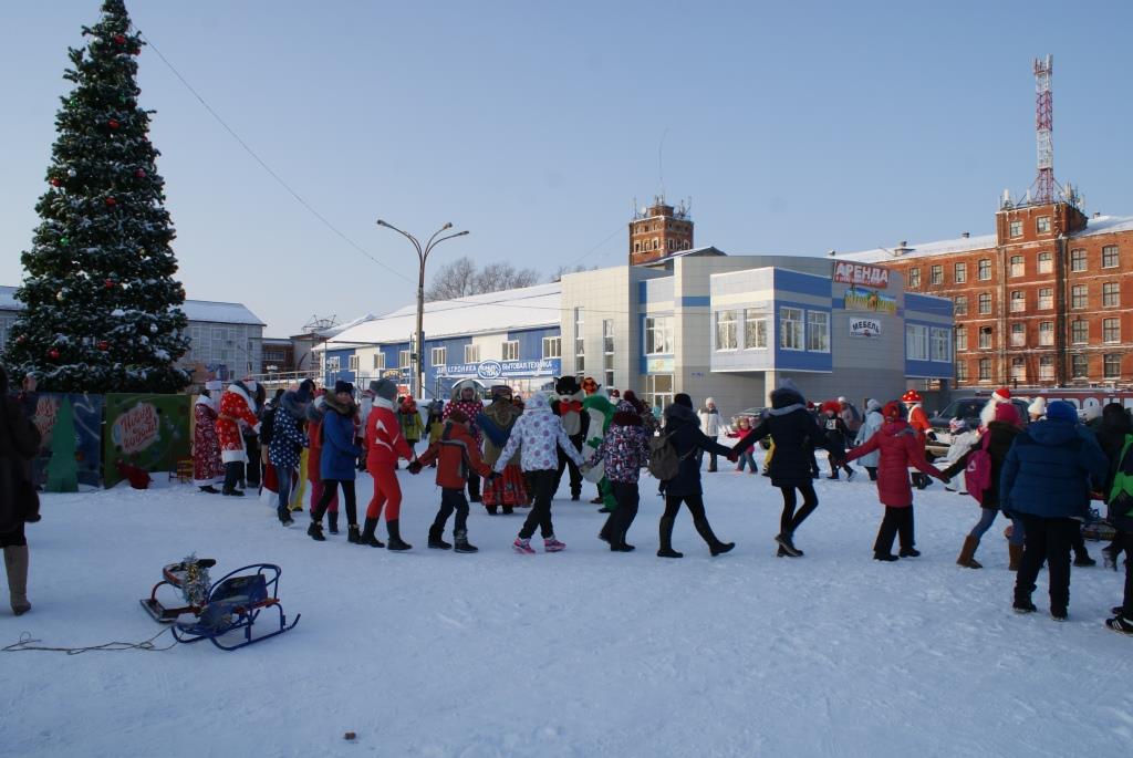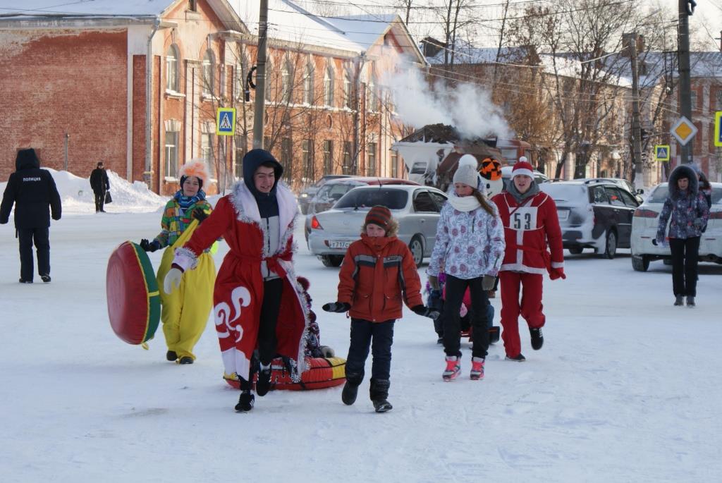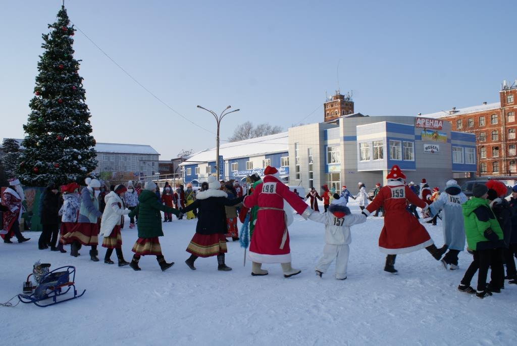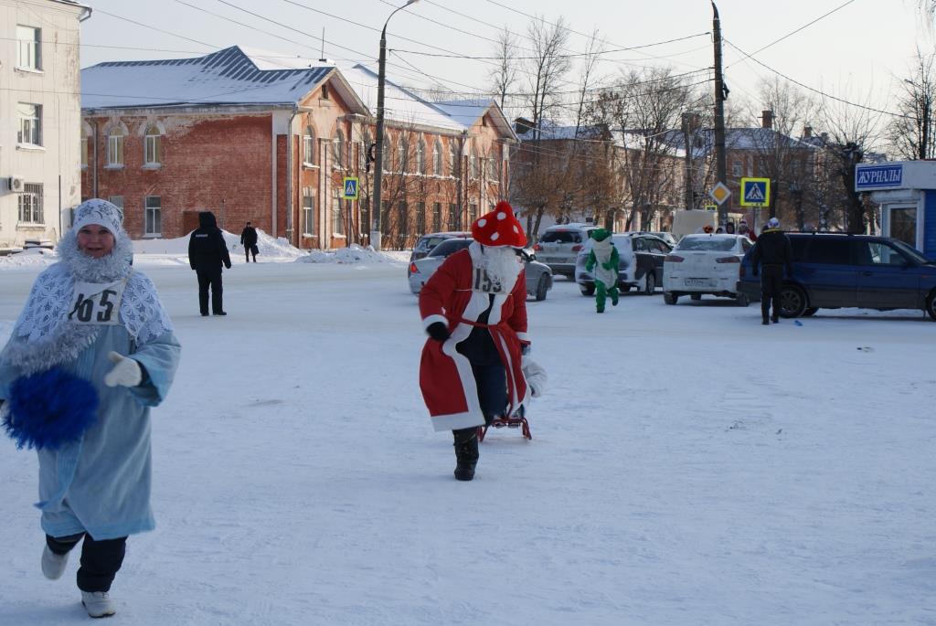 В день Сочельника в районном центре во второй раз прошло открытое городское культурно – спортивное состязание «Забег Дедов Морозов и Снегурочек».