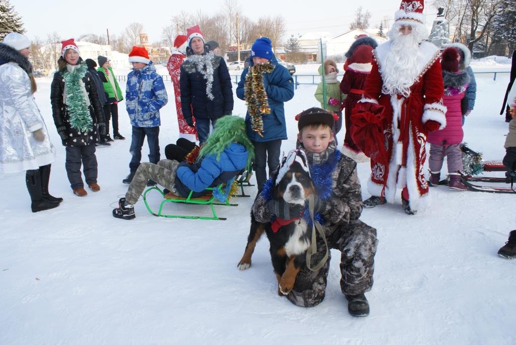 Стартовали. Кто на санках, кто на «ватрушках», все приветствуют прохожих, поздравляют с праздниками. Сказка! Большего волшебства привнес Тульский Артем, ученик 7а класса СОШ №4, который бежал не только со своими одноклассниками, наряженными в новогодних гномов, Дедом Морозом, Снегурочкой и … верным другом – псом по имени Фим, который произвел огромное впечатление на собинцев!