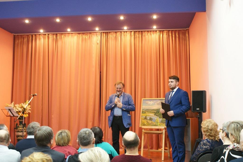 Александр Николаевич Захаренко (Белоруссия) и Наталья Кимовна Бритова (Россия), сопредседатели Фонда Кима Бритова и организаторы пленэра, поблагодарили администрацию района и города, коллектив Дома культуры за помощь в организации и проведении выставки, вручили картины Александру Всеволодовичу Разову, главе администрации Собинки района, Елене Геннадьевне Карповой, главе районного центра, и директору МБУ «Центр культуры и досуга» Королькову Юрию Викторовичу.