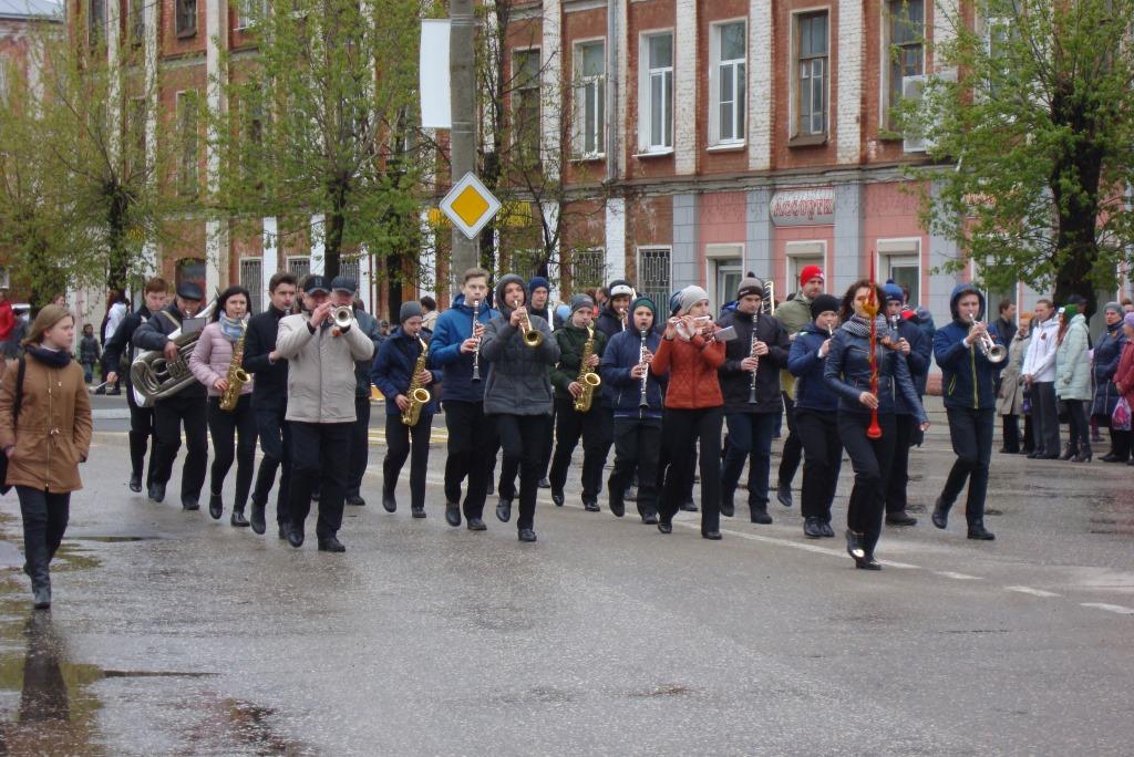 Несмотря на плохую погоду, собинцы приняли участие в праздничном шествии по улице Димитрова. А возглавлял шествие Ставровский народный духовой оркестр, руководитель А.Кузнецов.