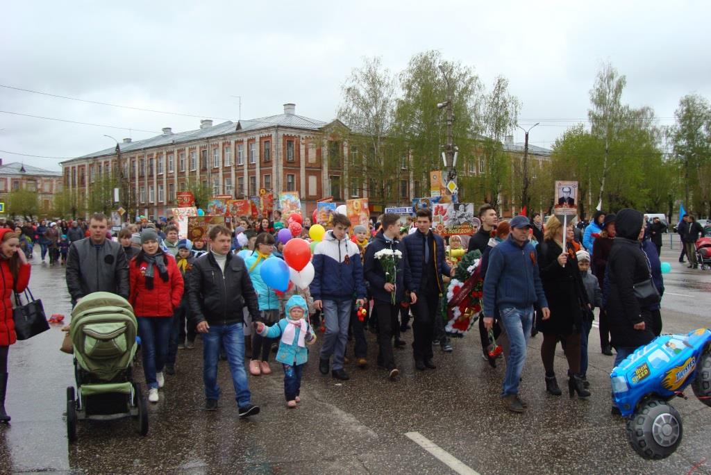 Рядом со знаменем Победы ровным строем шагали ветераны войны, труженики тыла, представители различных организаций города, школьники и просто собинцы.