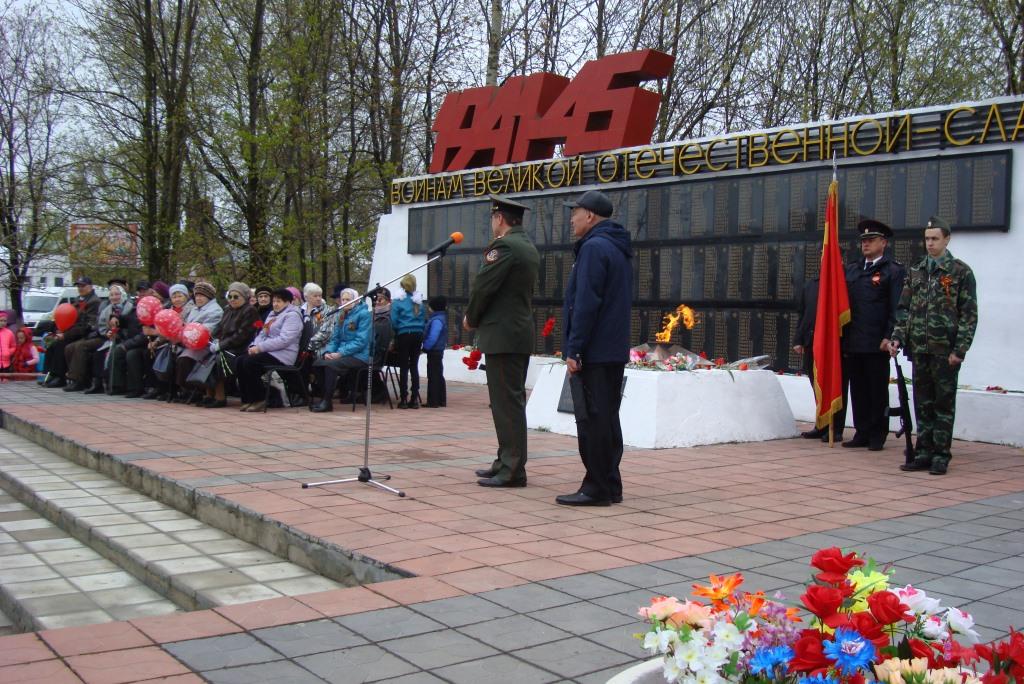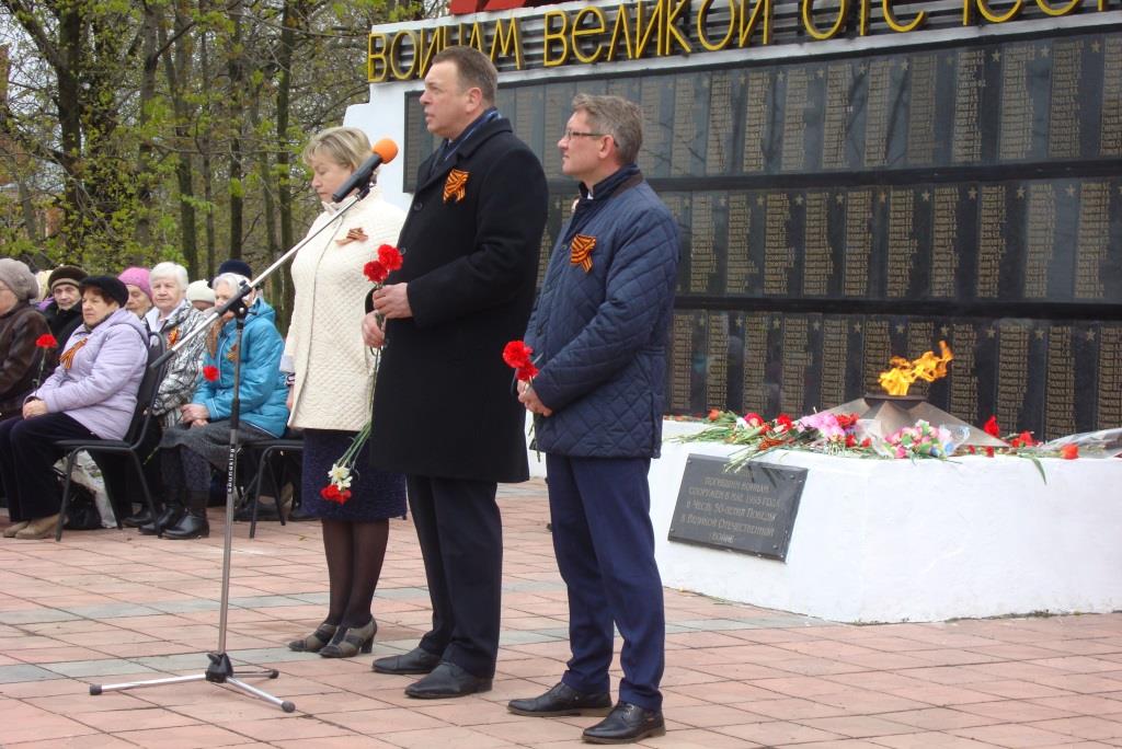 На площади у Мемориала погибшим воинам всех поздравляли с Днём Победы глава города Елена Геннадьевна Карпова, глава администрации Собинского района Александр Всеволодович Разов и многие другие.