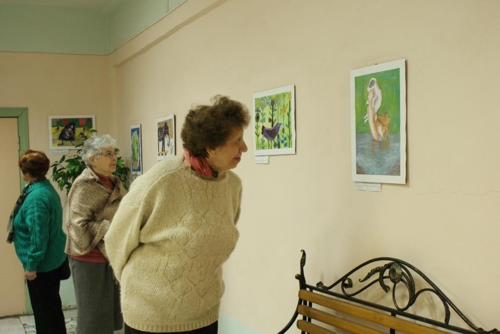 По окончании программы, заведующая отделом народно-прикладного искусства И.П. Курбанова пригласила участников Клуба на открытие экологической выставки объединения «Художник» (руководитель О.Н.Марушко), посвящённой Году экологии «Береги планету эту, ведь другой похожей нету».