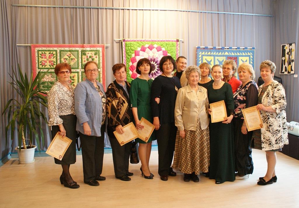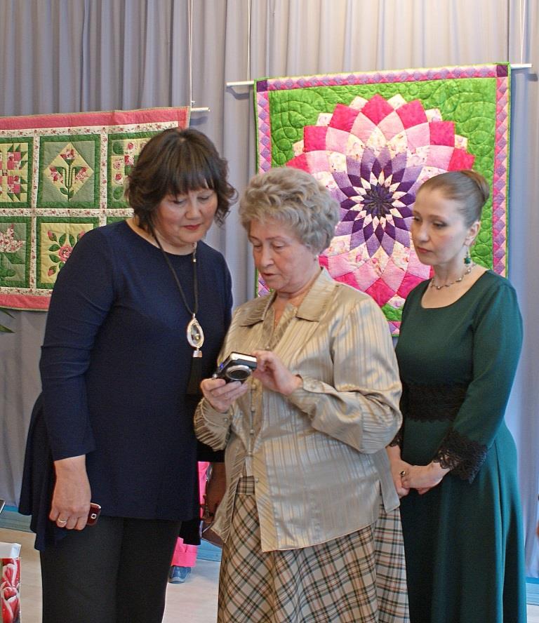 «Милым женщинам студии «Мастерица» и моей очень милой ученице с золотыми ручками успехов, здоровья и выйти на российский уровень. Удивили и порадовали своими работами».