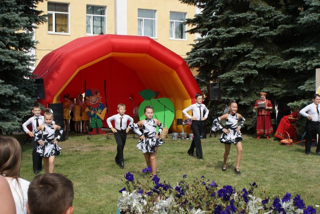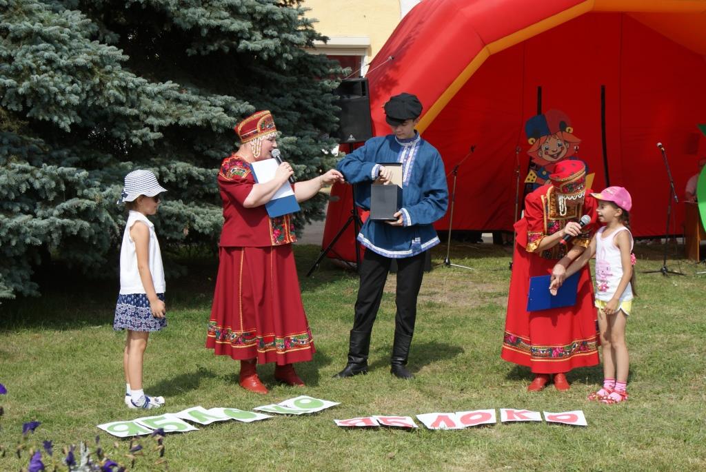 Безусловно, главным «героем» праздника стало яблоко. О нём Сказительницы (С.Боубатрын, С.Соловьёва), Матрёшки (В.Дубровкина, К.Двуреченская) рассказывали стихи, пели песни, вместе вспоминали сказки, где упоминалось яблоко. Этот фрукт служил и призами в различных конкурсах и эстафетах. Таких, как «Собери из букв название фрукта», «Попади в мишень», «Срежь самую длинную непрерывную кожуру с яблока» и других. Ростовая кукла Петрушка-весёлая игрушка с удовольствием загадывала ребятам загадки. И ещё яблоки служили праздничным угощением для разгорячённых игрой ребятишек.