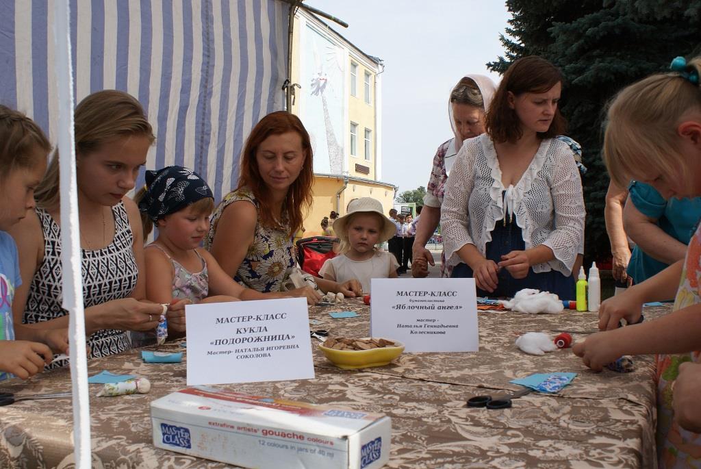 На праздничной площадке работал Вернисаж художника Григория Жукова, проводились мастер-классы «Яблочный ангел» (руководитель изостудии «Палитра» Н.Г.Колесникова), «Кукла Подорожница», «Яблочная открытка» (мастера декоративно-прикладного искусства И.П.Курбанова и Н.И.Соколова) и другие мастера Собинского подворья.