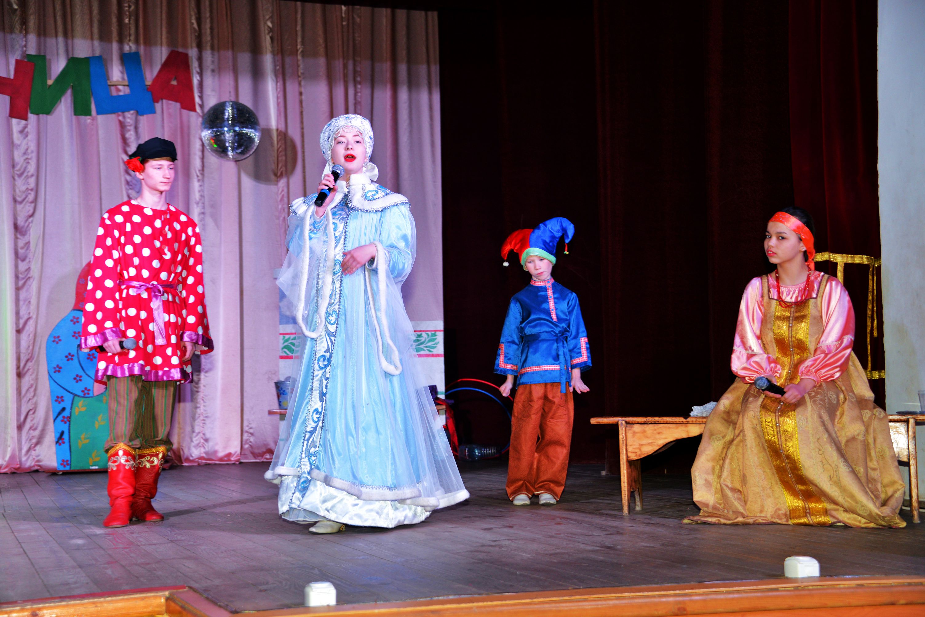 Так называлось театрализованное представление для детей детских садов и младшего звена школ города. 14 и 15 февраля по два спектакля в день представлял детский сектор Дома культуры красочное и веселое представление со скоморохами, сказочными героями: Марфушечкой-душечкой, Емелей, Зимушкой-Зимой, Весной-Красной, Матушкой.