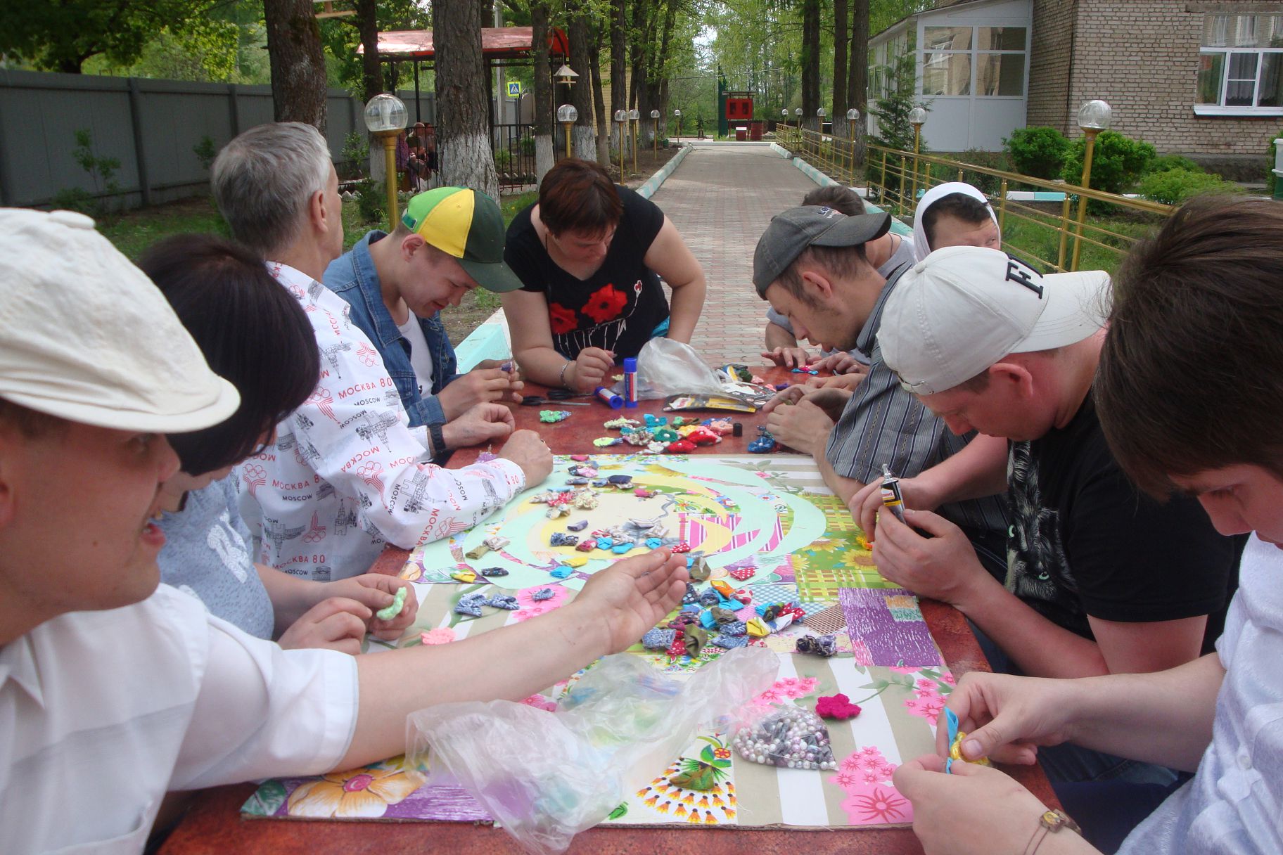 15 мая на территории Собинского ПНИ был проведен мастер-класс по изготовлению декоративных цветов из пряжи для текстильного панно. Мастер-класс был проведен Марушко О.Н. , в рамках праздника, посвященного Дню семьи, на волонтерских началах.