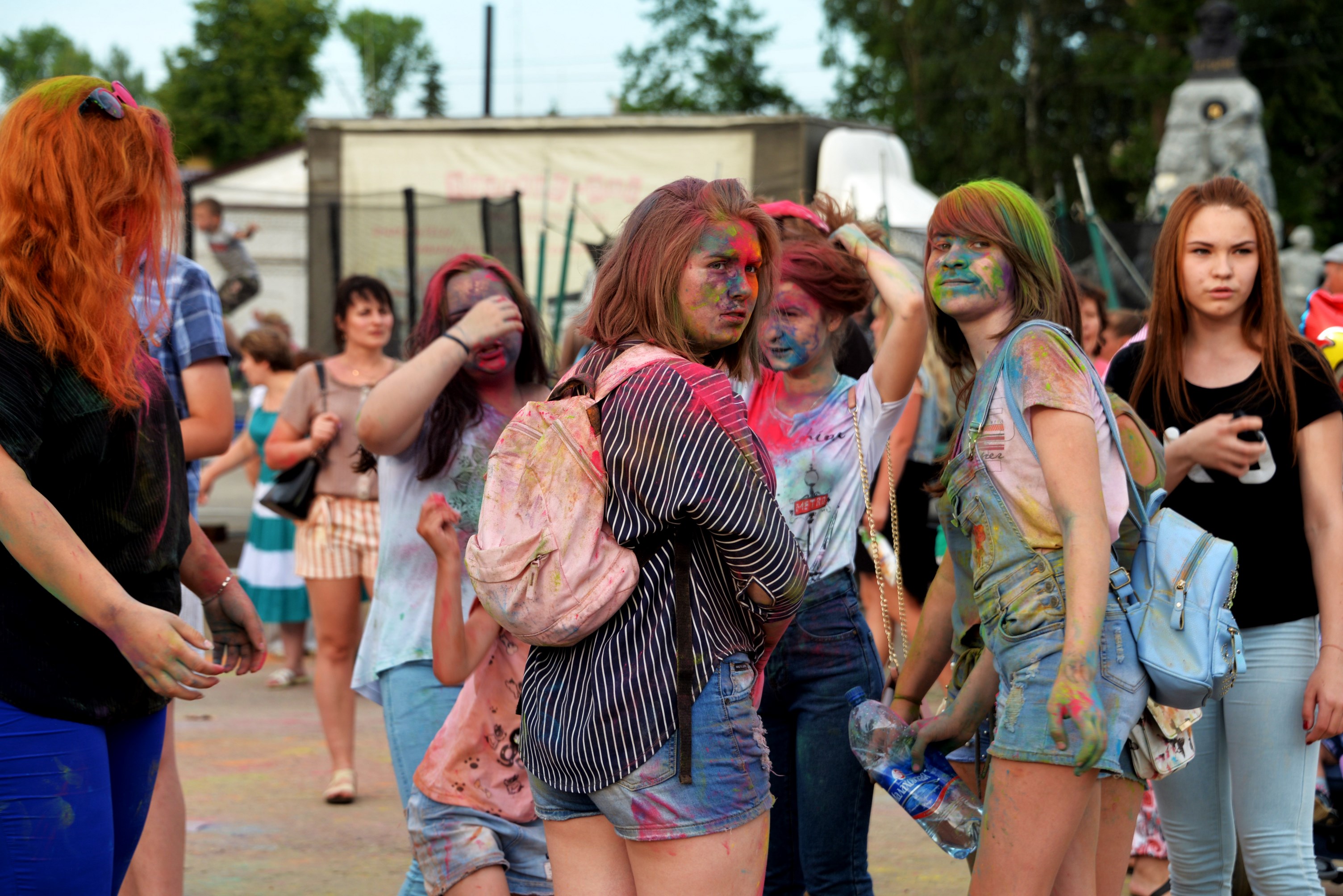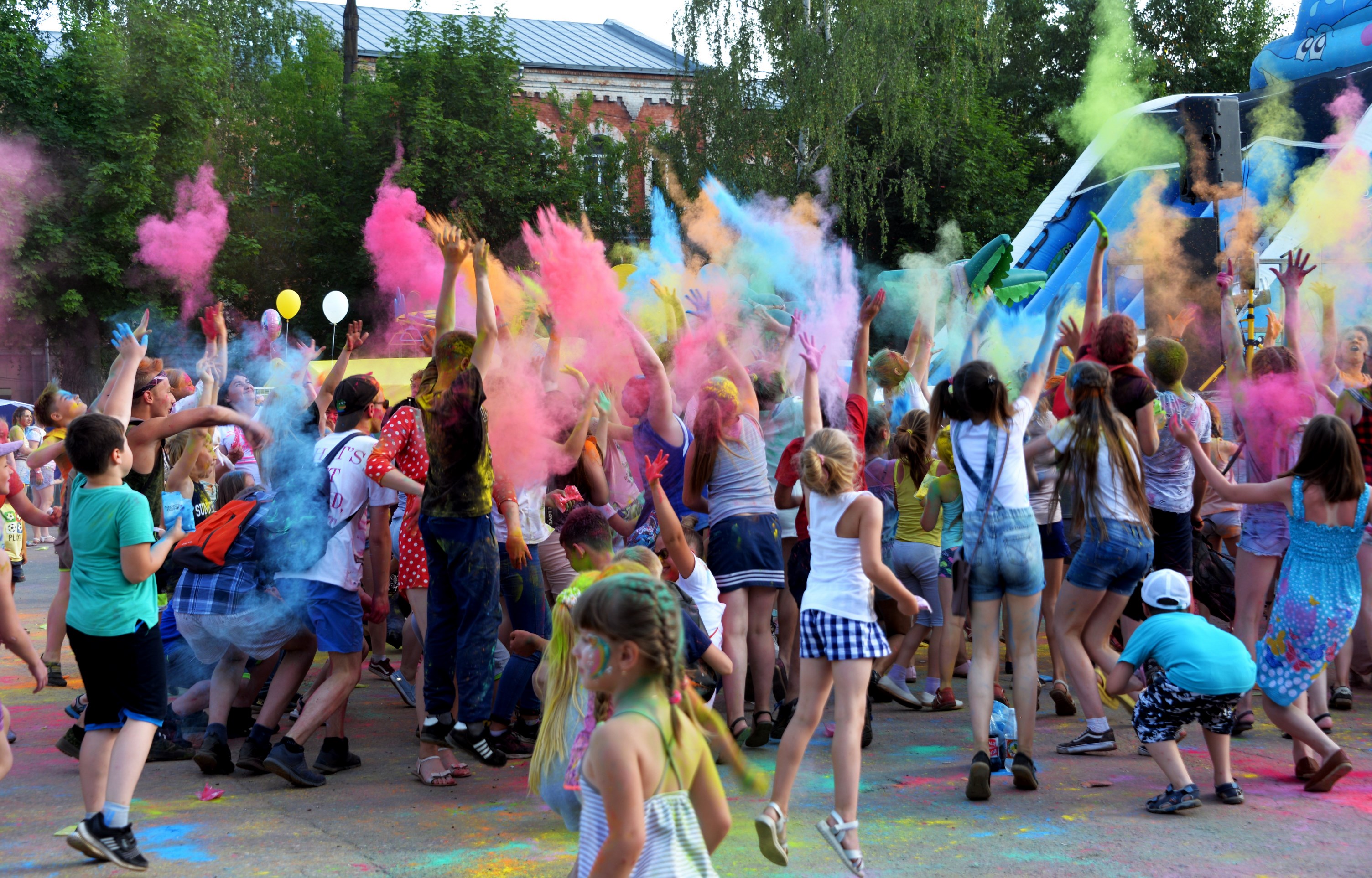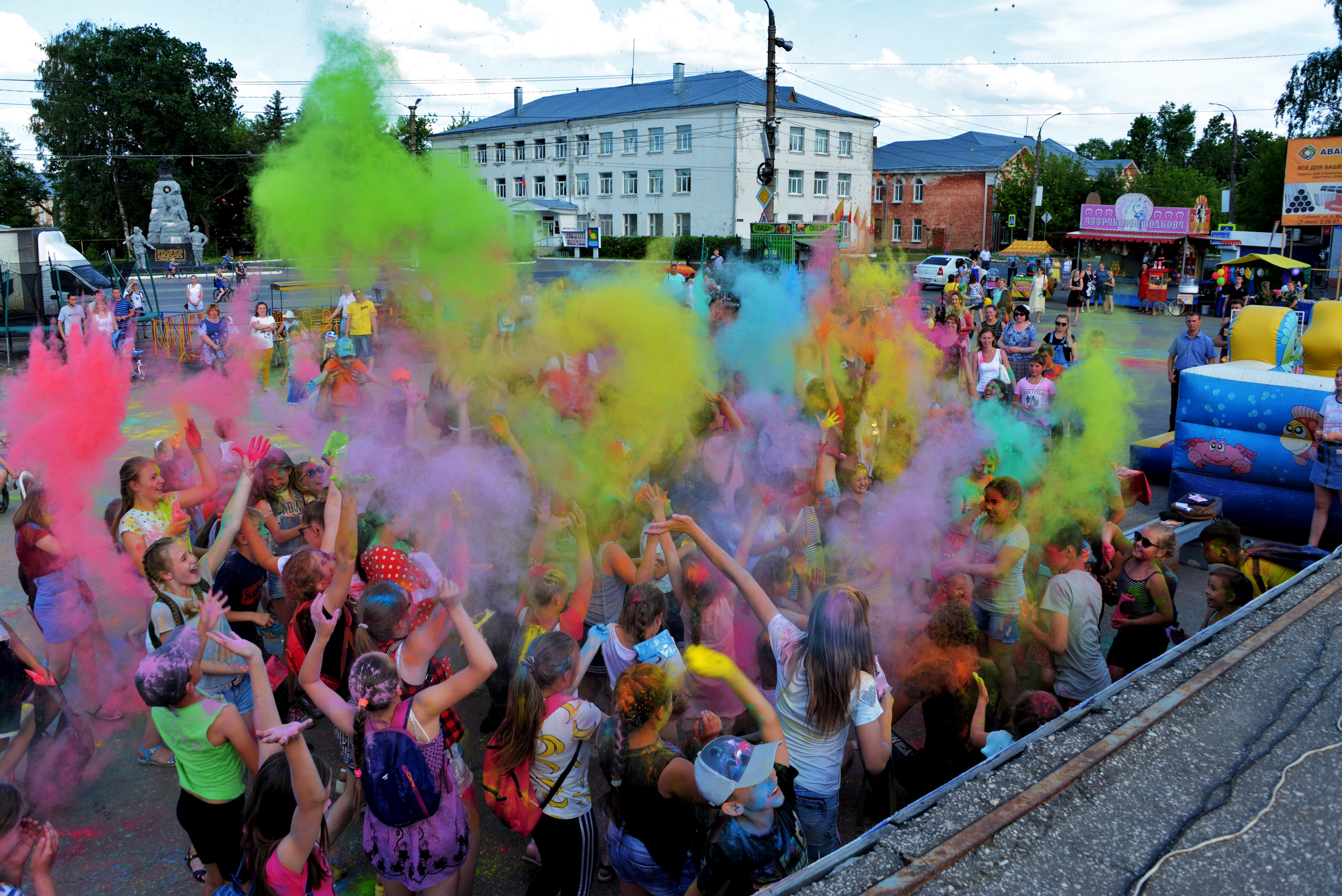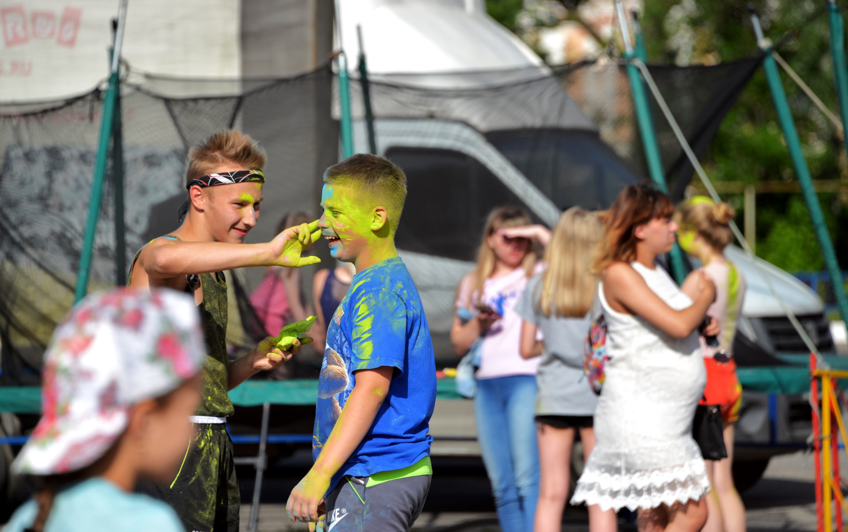 Открыл программу «Фестиваль красок»: ребята в прямом смысле окрашивали себя, своих друзей, родителей, бабушек и дедушек во все цвета радуги. А взрослые, кстати, в стороне не стояли, а с большим азартом веселились и раскрашивали друг друга.