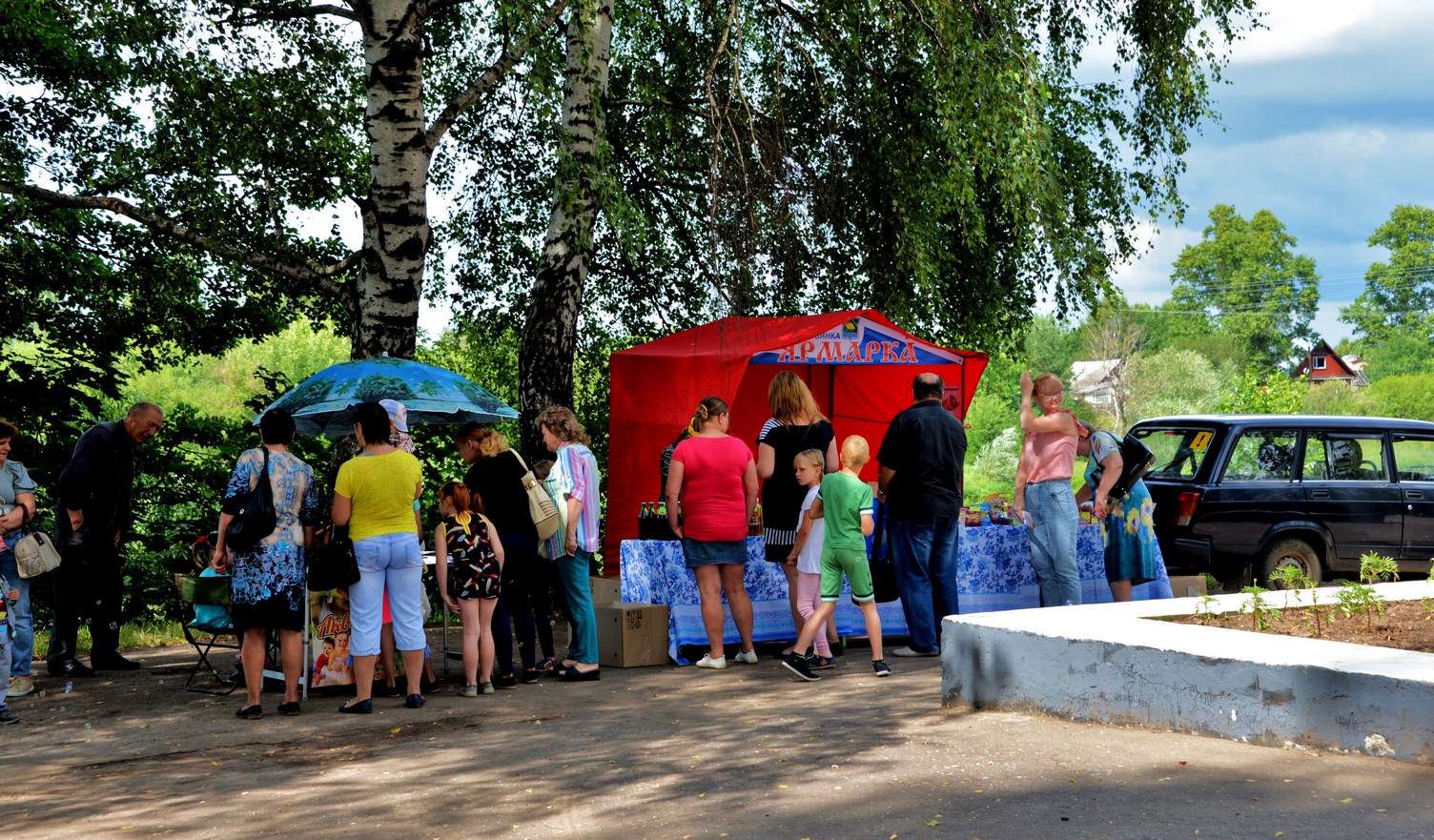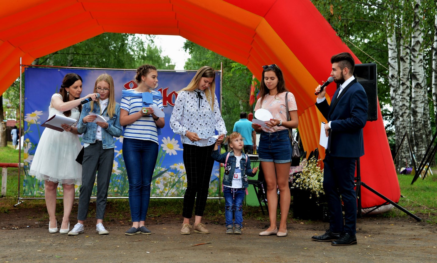Сама предпраздничная обстановка настраивала на радость, душевность и хорошее настроение. Было оформлено «Ромашковое поле», на котором все желающие могли сделать семейное фото, работал вернисаж местных художников, где можно было посмотреть и купить авторские работы и заказать художественный портрет, позируя автору. Как никогда, был востребован аквагрим, ведь ромашка на щеке или ладошке для ребенка – дополнительная радость! Кстати, самодельные ромашки, изготовленные проживающими Собинского Дома интерната, уходили «На ура!»