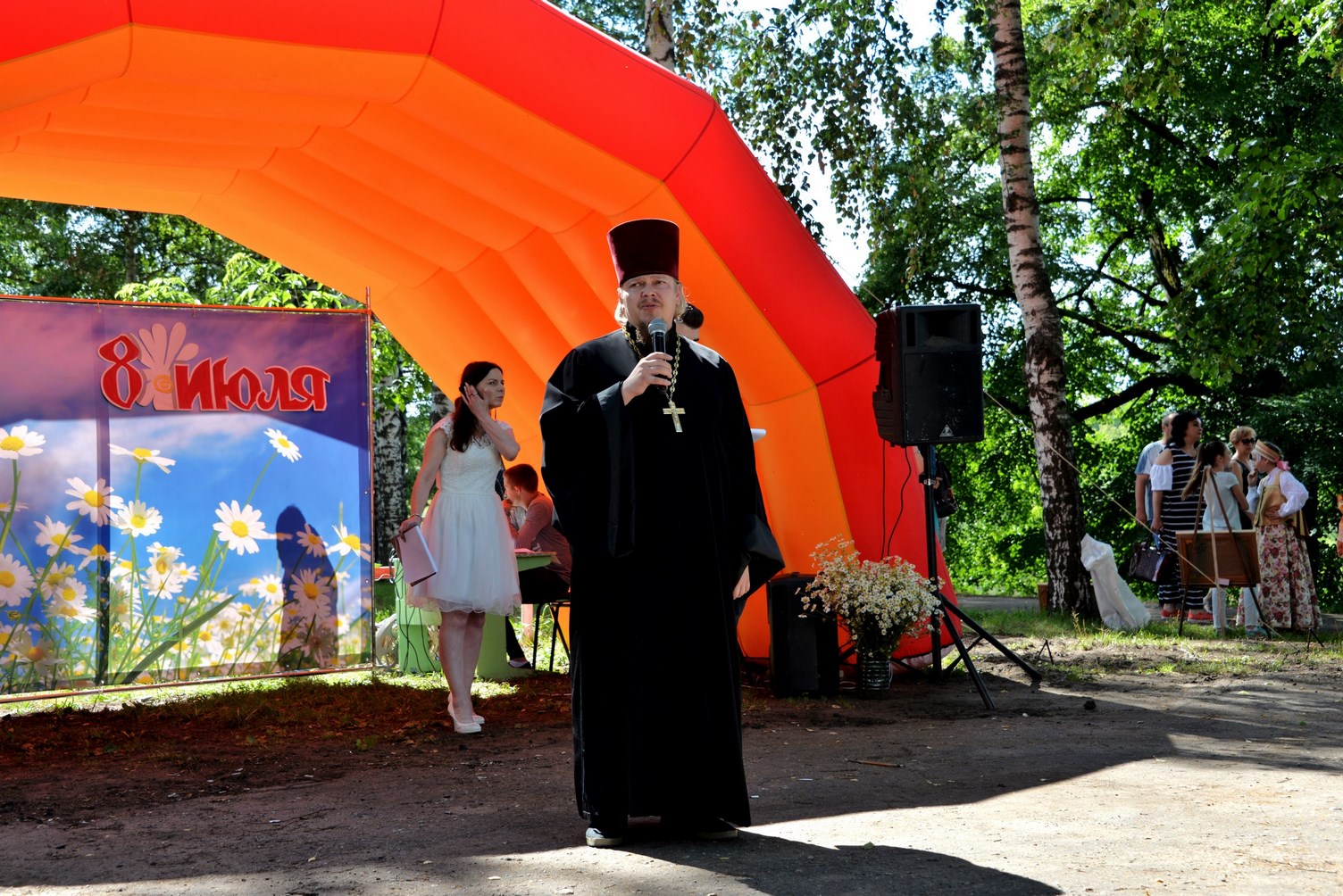 8 июля впервые в Собинке на берегу нашей любимой реки Клязьма прошел замечательный праздник, посвященный Российским Святым княгине Февронье и князю Петру Муромским. Праздник широко около 5 лет отмечается в России, местом его был избран замечательный город Муром, откуда родом Святые.