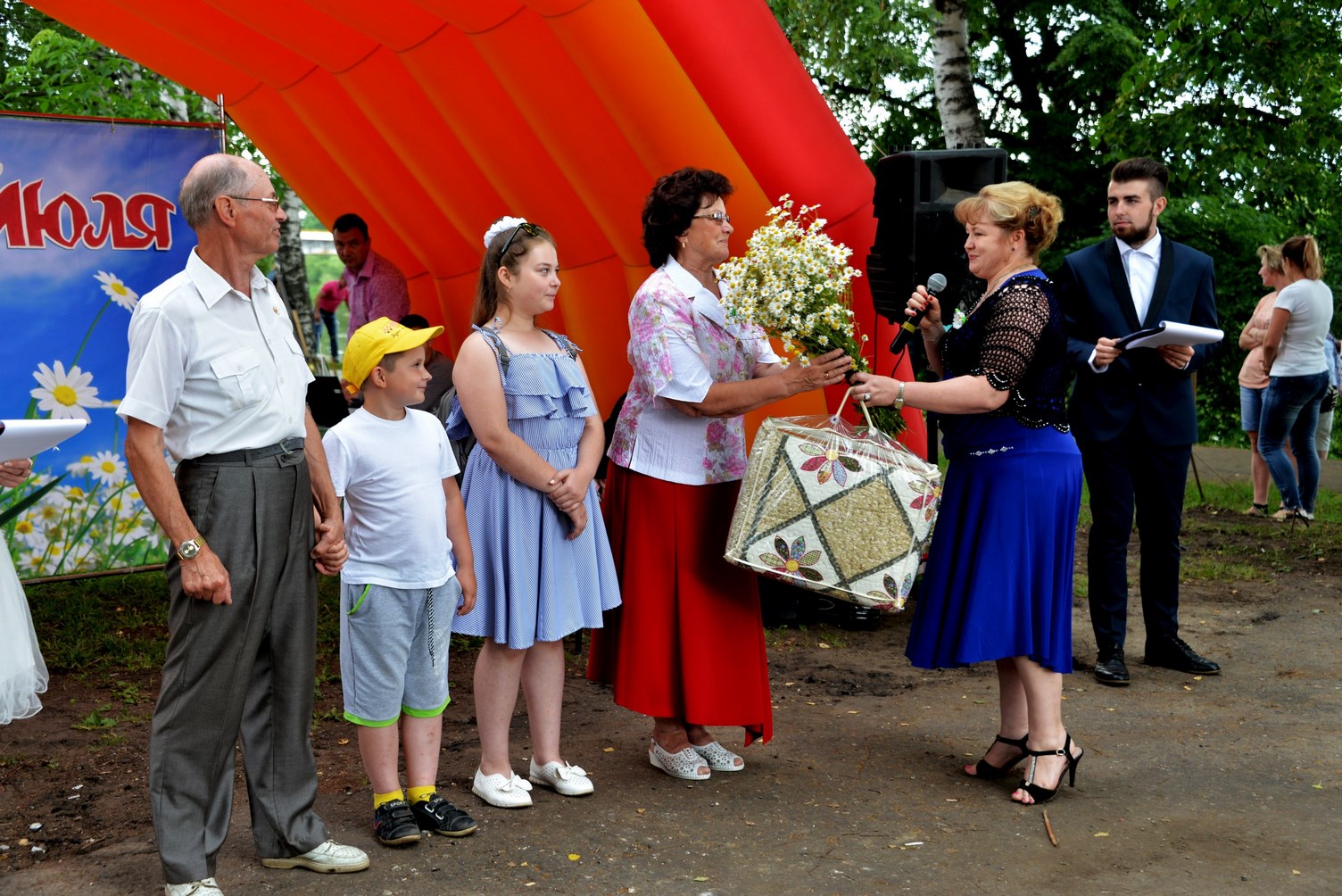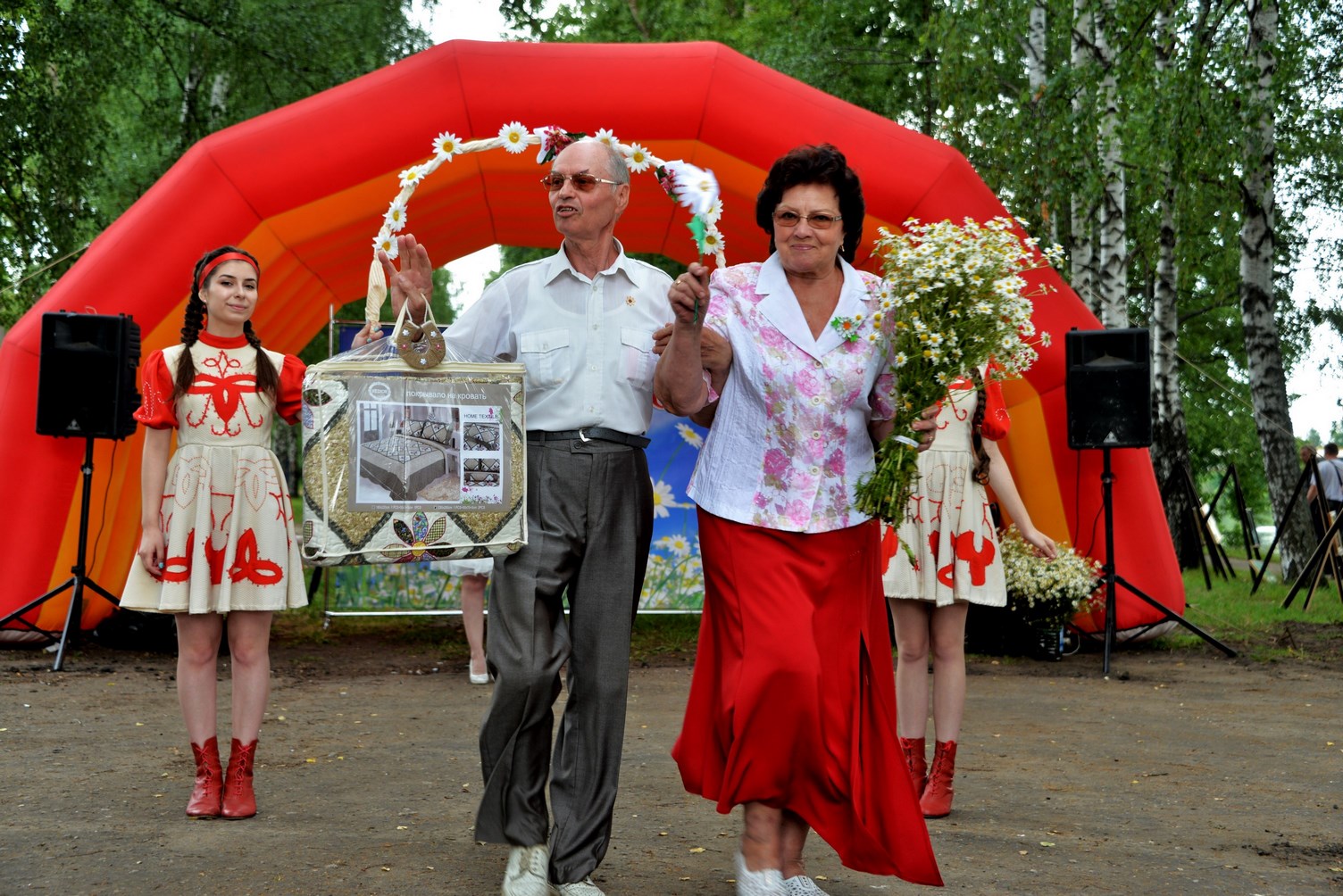 Конечно, всех тронул рассказ о семьях, которые прожили всего один день (Горбунцовы и Семеновы), один год (Познуховы), о православной семье (Бадины), о творческих семьях (Хребтовы,Тарасовы).Для каждой семьи были приготовлены различные конкурсы, к которым супруги отнеслись с чувством юмора и с успехом принимали участие. Каждая семья из рук главы города Е.Г.Карповой и председателя совета народных депутатов Н.А.Ермолаевой получила памятные подарки и, конечно, букет ромашек – символ праздника!