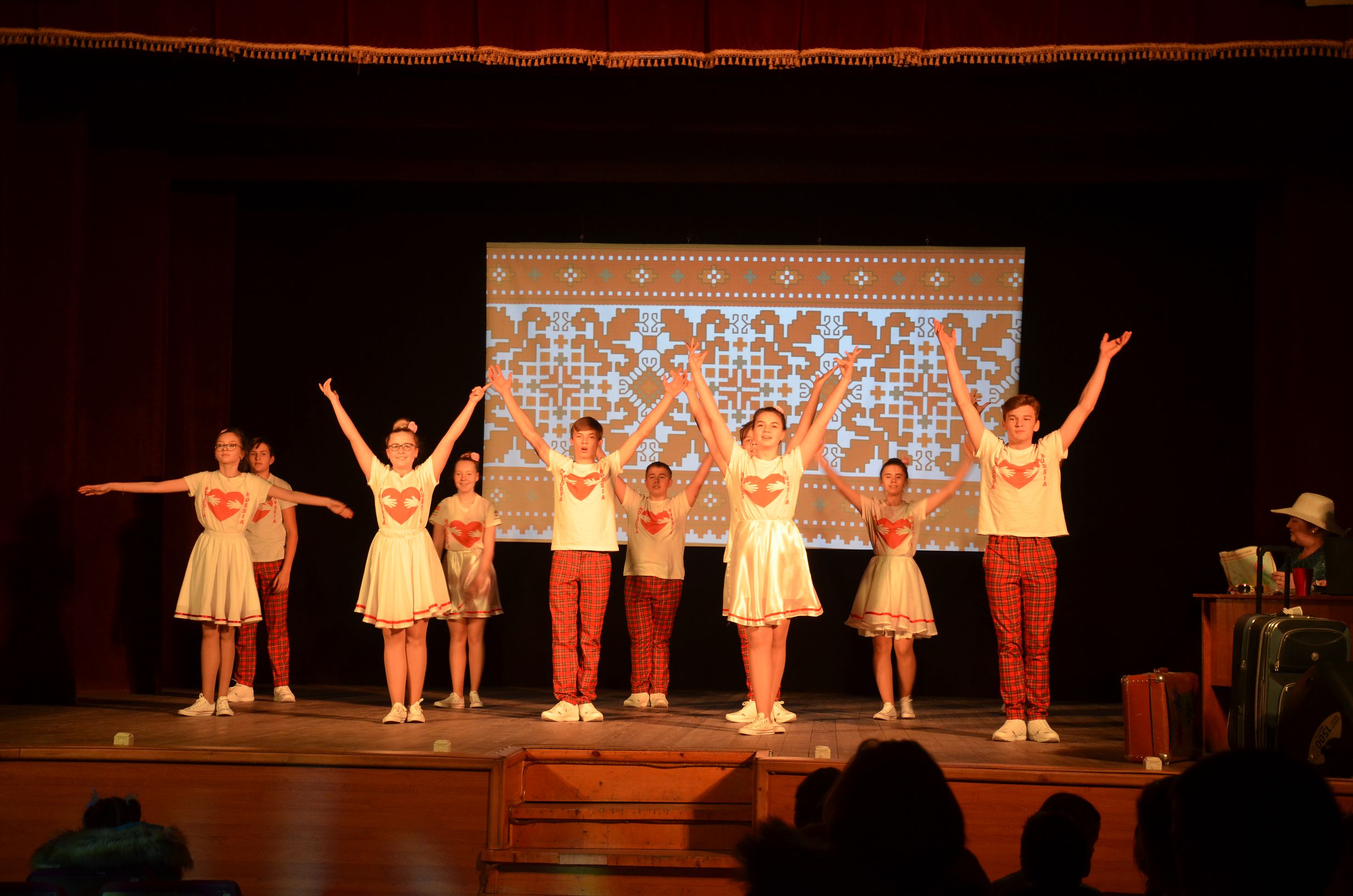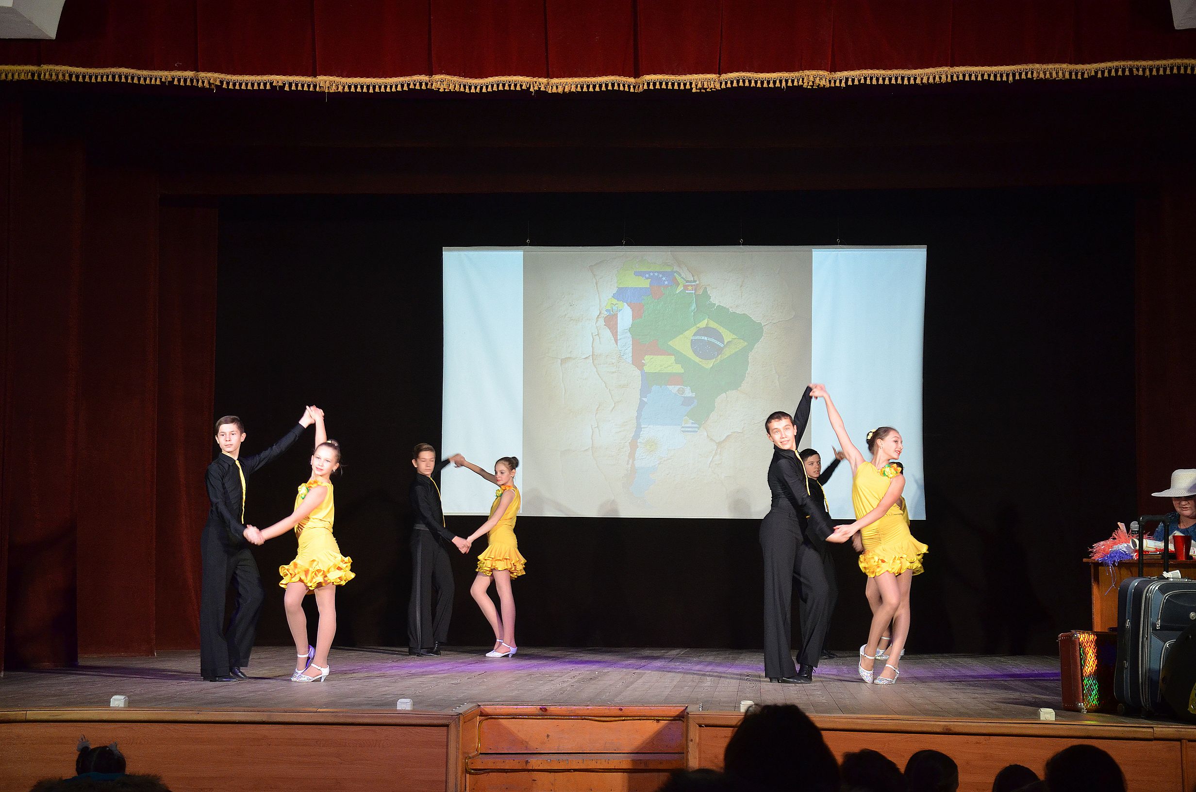 В рамках урока ребята увидели жизнь России, Беларуси, Молдовы, Украины, США, Бразилии, Африки. Каждая страна была представлена не только словесно, но и творческими номерами в исполнении хореографического ансамбля "Экспрессия", народного ансамбля бального танца "Эврика", театральной студии "Матроскин", танцевального коллектива "Капели", "образцового" танцевального коллектива "Эффект, Галины Суфьяновой.