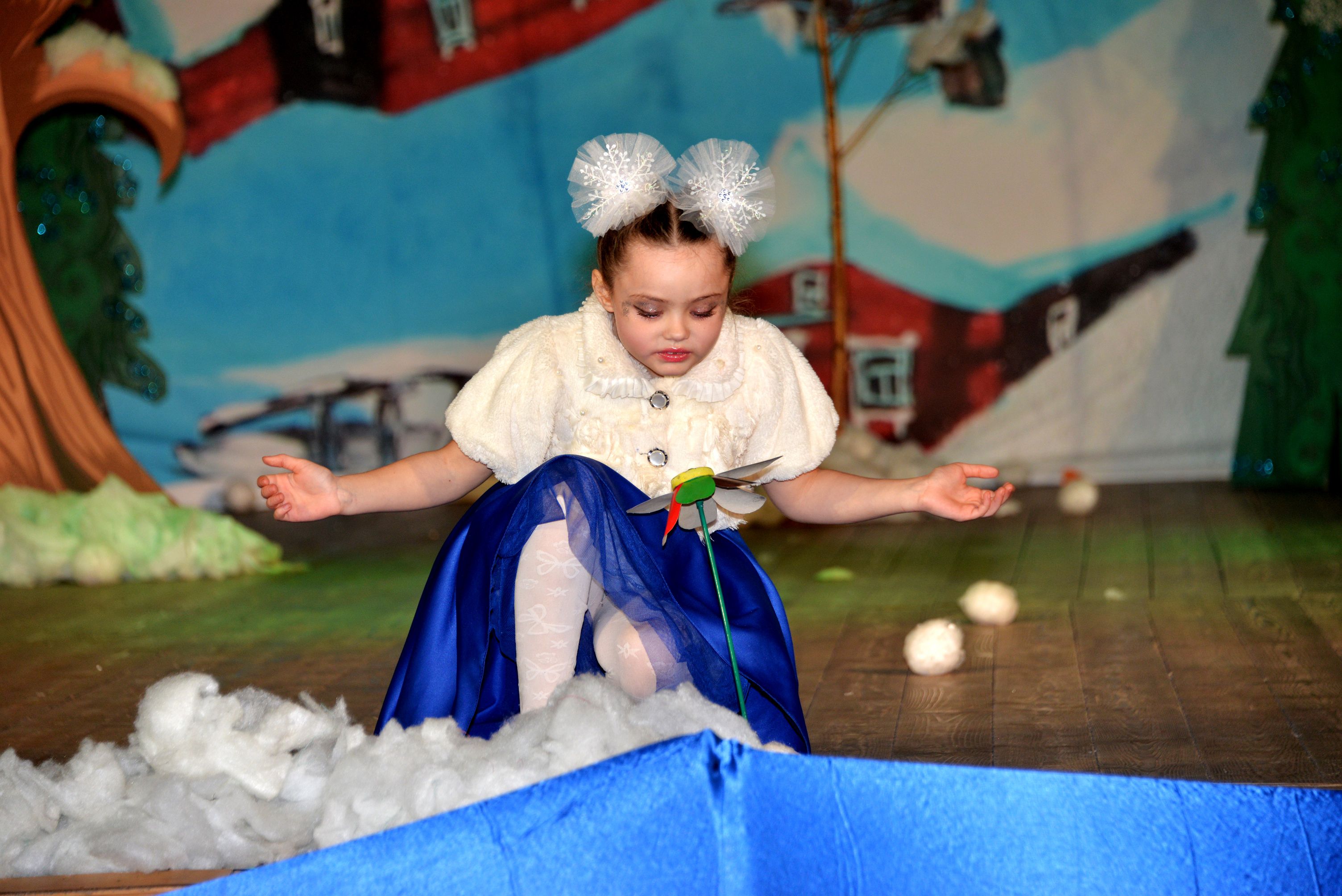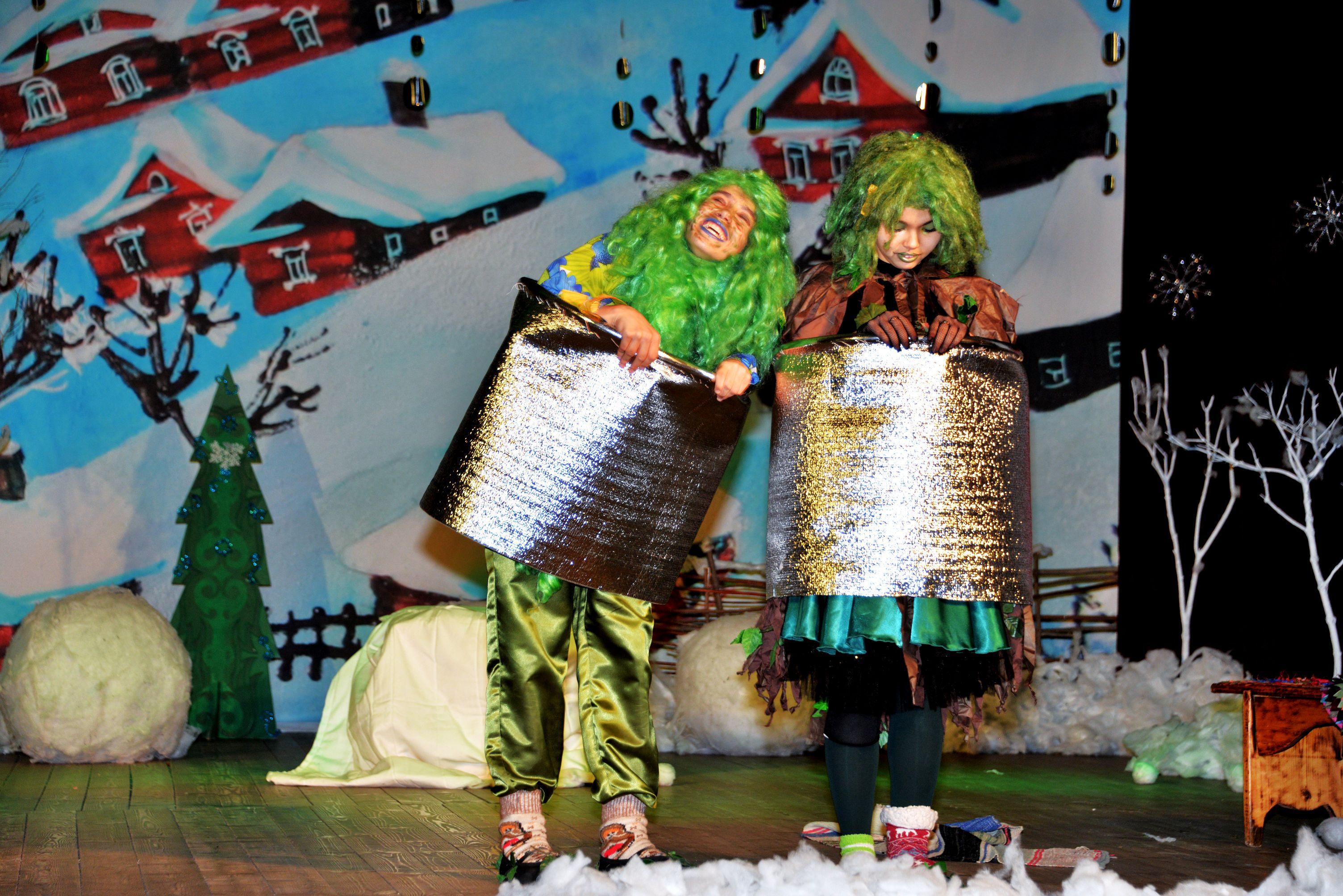 Подготовились основательно. Сцену оформили не хуже театральной: зимний пейзаж, «живая река», огромное дерево, Емелина печь… да что там! Целая заснеженная деревня на заднем плане! В основу сказки, которую написала Галина Суфьянова, вложен глубокий смысл: необдуманный поступок девочки повлёк за собой ряд непредсказуемых событий – исчезновение реки, возвращение злой колдуньи, похищение новогодних юбилейных огней. Сможет ли маленькая героиня осознать свою опрометчивую ошибку, проявит ли она ответственность за содеянное перед людьми и природой, вернёт ли всё на прежнее место или использует последний лепесток желания для себя? В сказке прослеживается и предстоящий юбилей нашего города, которому в 2019 году исполняется восемьдесят лет, ровно столько огней было похищено колдуньей Никату. И всё же главным было то, что происходило на сцене. А на сцене играли простые учащиеся девчонки и мальчишки, участники театрального кружка «Карусель», руководит которым заведующая детским сектором Светлана Боубатрын. Играли замечательно и увлекательно, уводя каждый раз зрителя от одного действия к другому, оставляя при этом загадку. Может поэтому зрители, не отрываясь, следили за происходящим? Роль злой колдуньи Никату сыграла, теперь уже и на собинской сцене, актриса Владимирского драматического театра Анна Захарова, сыграла блестяще, с присущей только ей энергетикой. Спектакль стал на голову выше, ведь на сцене играла настоящая профессиональная актриса, такого у нас еще не было. Она же и сказку ставила, требуя от маленьких артистов большой самоотдачи. И они старались изо всех сил. Украсили представление яркими танцами участники коллективов «Экспрессия», руководитель А. В. Мужикова и образцовый танцевальный коллектив «Эффект», руководитель Ю.В. Савельева.