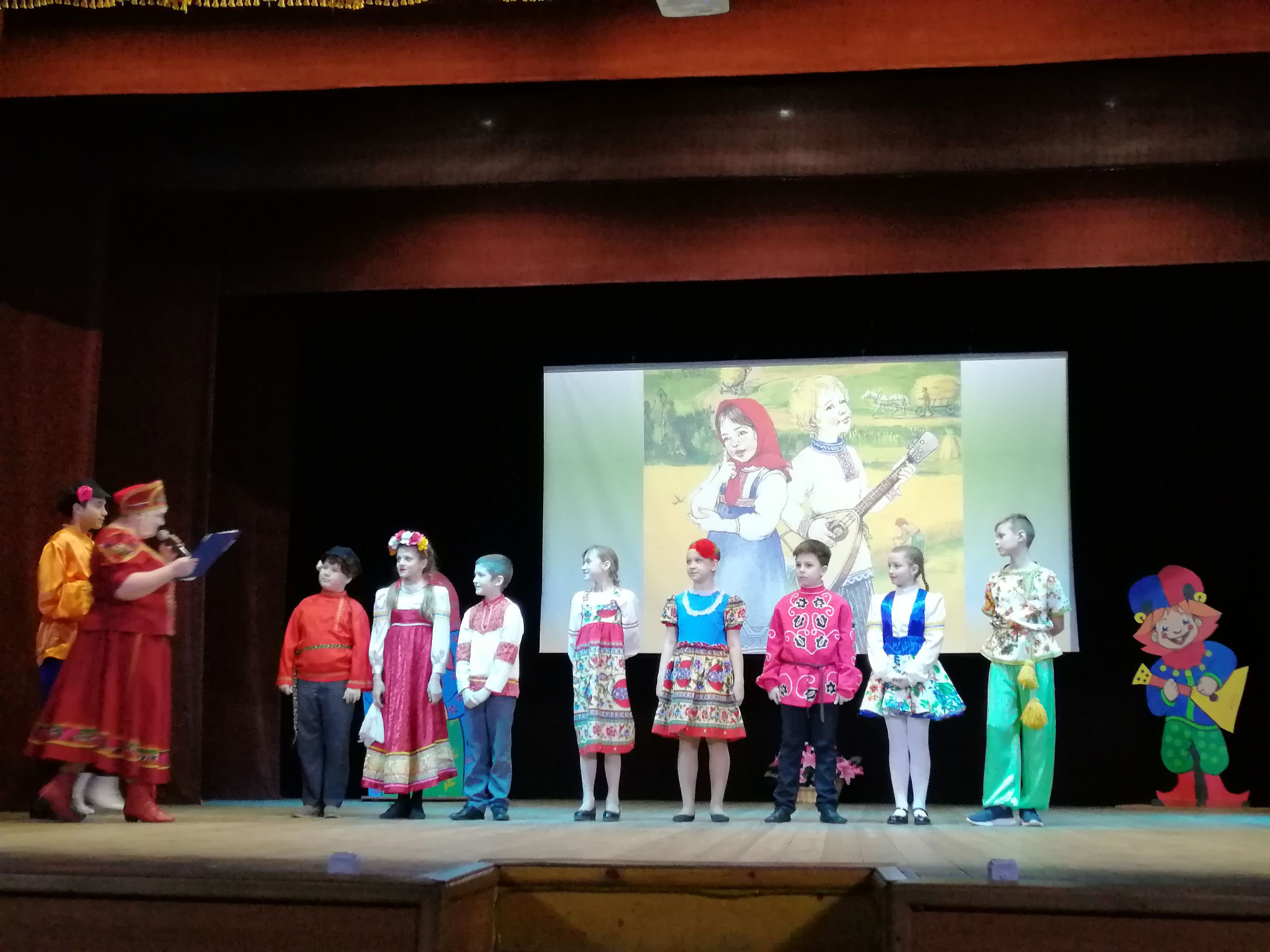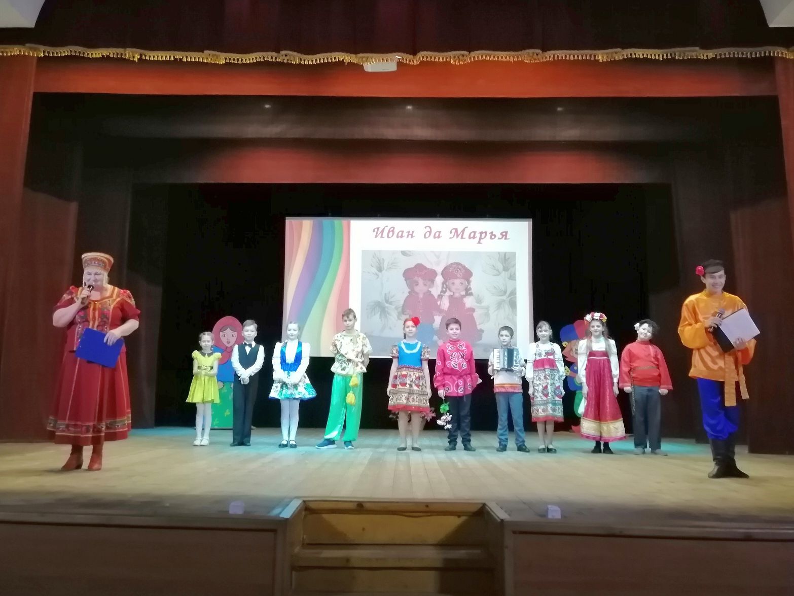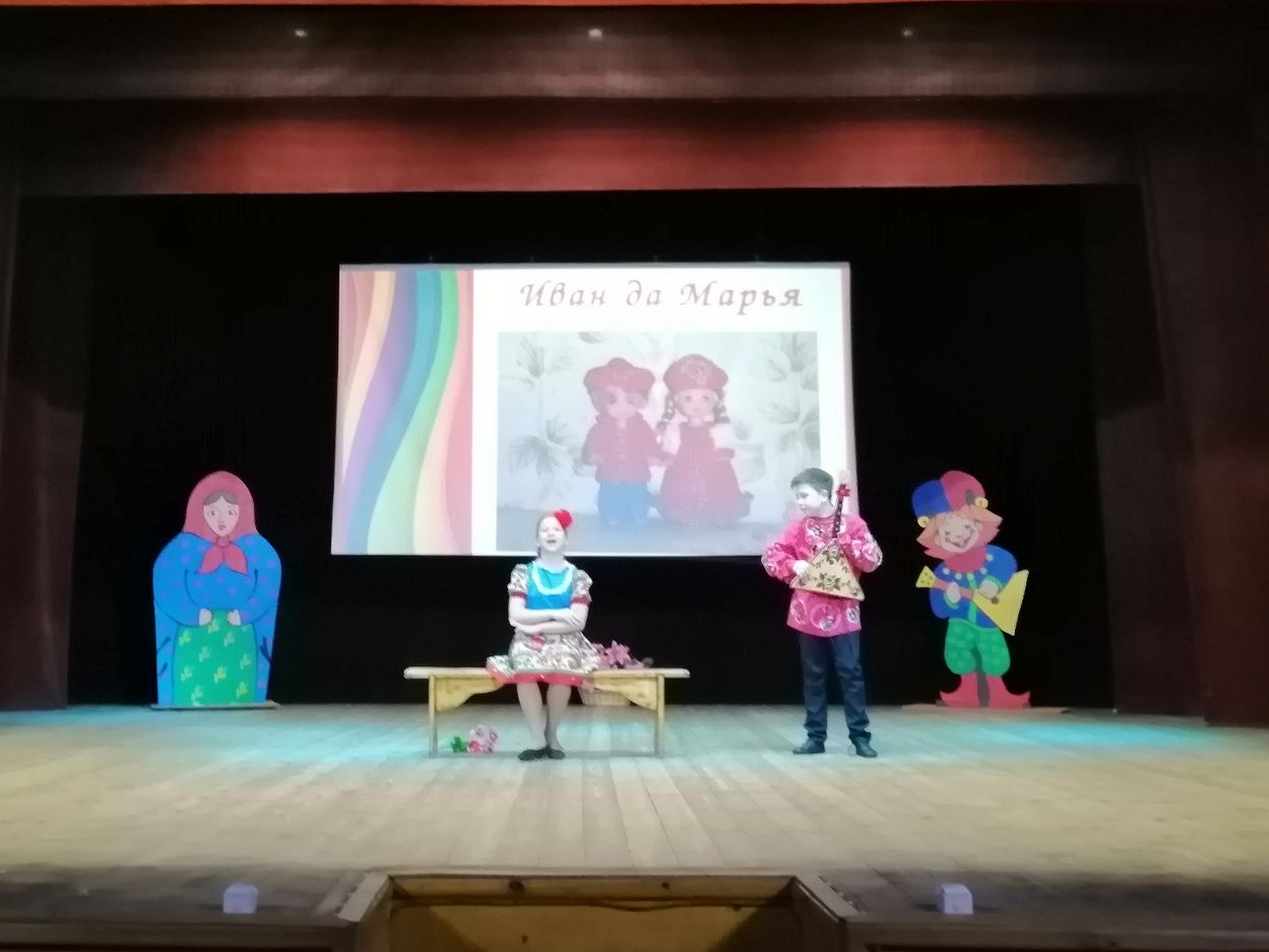 В конкурсной программе приняли участие пары Собинских школ №1 и №4. Участники раскрыли свои таланты сразу в нескольких конкурсах. Первый конкурс, он был домашним заданием «Самопрезентация», где ребята представили мир своих интересов и увлечений и немного рассказали о себе. Второй конкурс, он состоял из нескольких заданий назывался «Как бывало в старину», ребята продемонстрировали свои знания народных сказок, пословиц и поговорок, затем приняли участие в небольшом дефиле- Иваны с коромыслами и вёдрами, а наши Марьи - с ухватами и чугунами. Третий конкурс - «Очумелые ручки», пока зрительный зал смотрел выступление вокального коллектива «Пой со мной» рук. Ирина Табанюк, «Иваны» собирали букет для своей «Марьи», а «Марьюшки» в это время мастерили венок для своего «Ивана». Четвёртый конкурс «Творческий» был самым интересным и неожиданным, ребята подготовили его заранее, где смогли показать зрителям и жюри все свои таланты и творческие навыки. Гостями конкурсной программы были Народный ансамбль б/т «Эврика» рук. Галина Малова и танцевальный коллектив «Капели» рук. Екатерина Ромашова. Фольклорный конкурс «Иван да Марья» помогает приобщению детей к семейным традиционным ценностям и народной культуре, помогает выявить и раскрыть таланты детей. Этот праздник великолепный пример творческого общения детей.