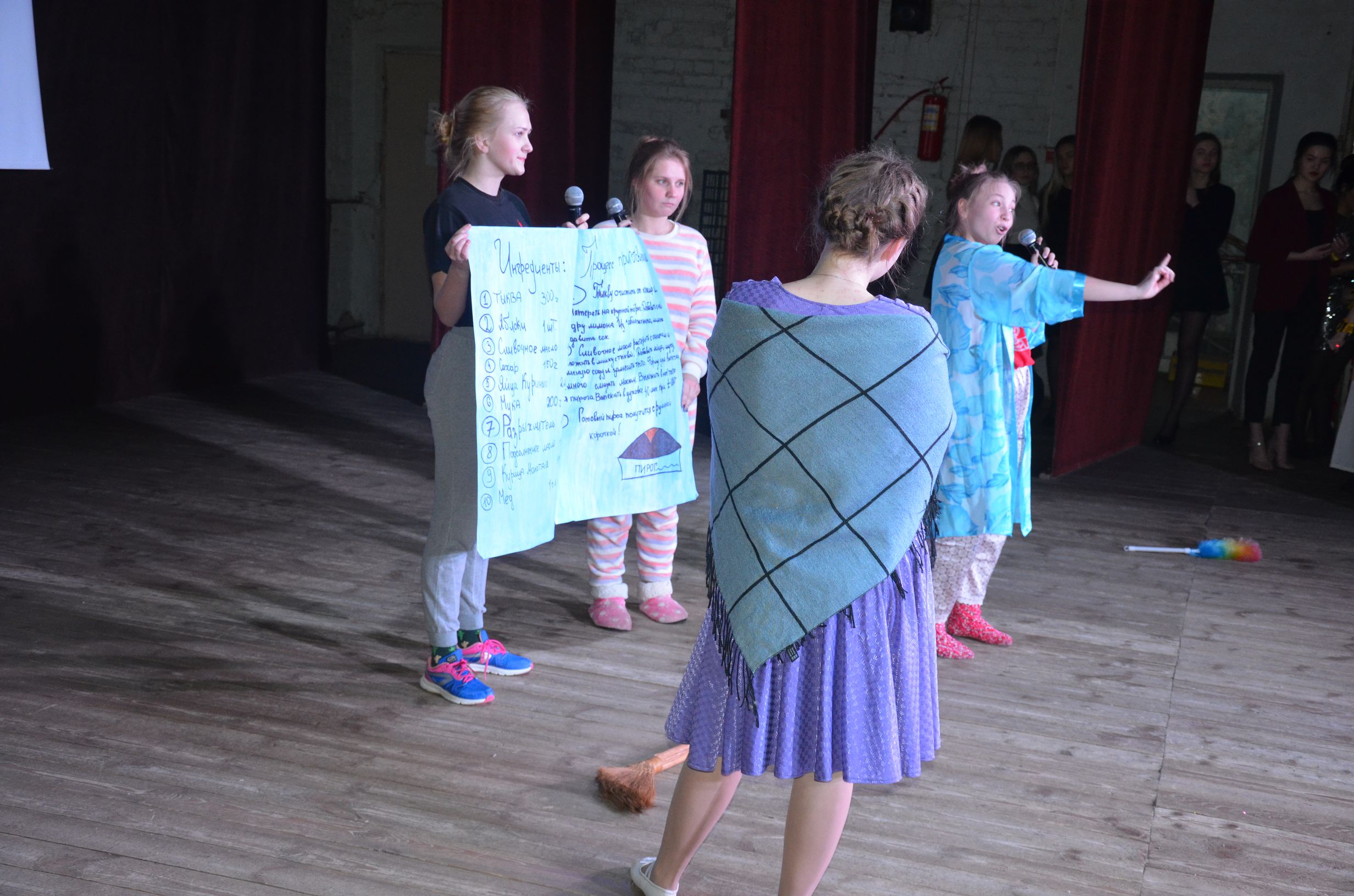 Завершился конкурс творческим этапом. Каждая команда должна была представить поздравительную открытку в любом жанре. Были и танцы, и песни, и пародии!