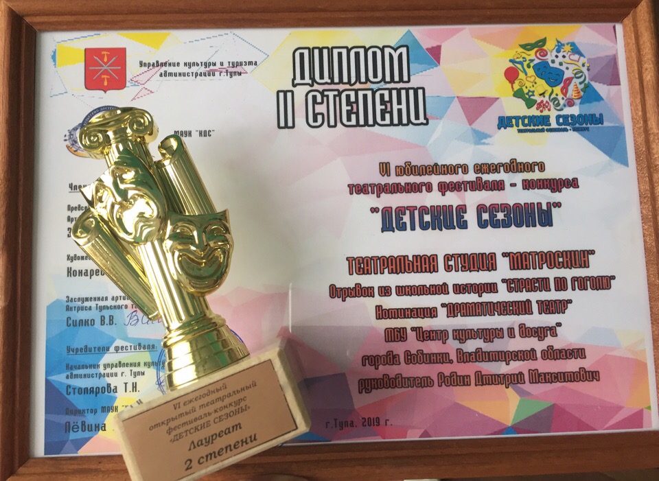 В 2018 году наш город представляла младшая группа коллектива, а в этот раз не только город, но и регион (из Владимирской области "Матроскины" были одни) представили старшие ребята. Видеозапись школьной истории "Страсти по Гоголю" на конкурс отправили еще в январе, а в марте пришло официальное приглашение на Гала-концерт с известием о том, что коллектив стал призером фестиваля - конкурса.