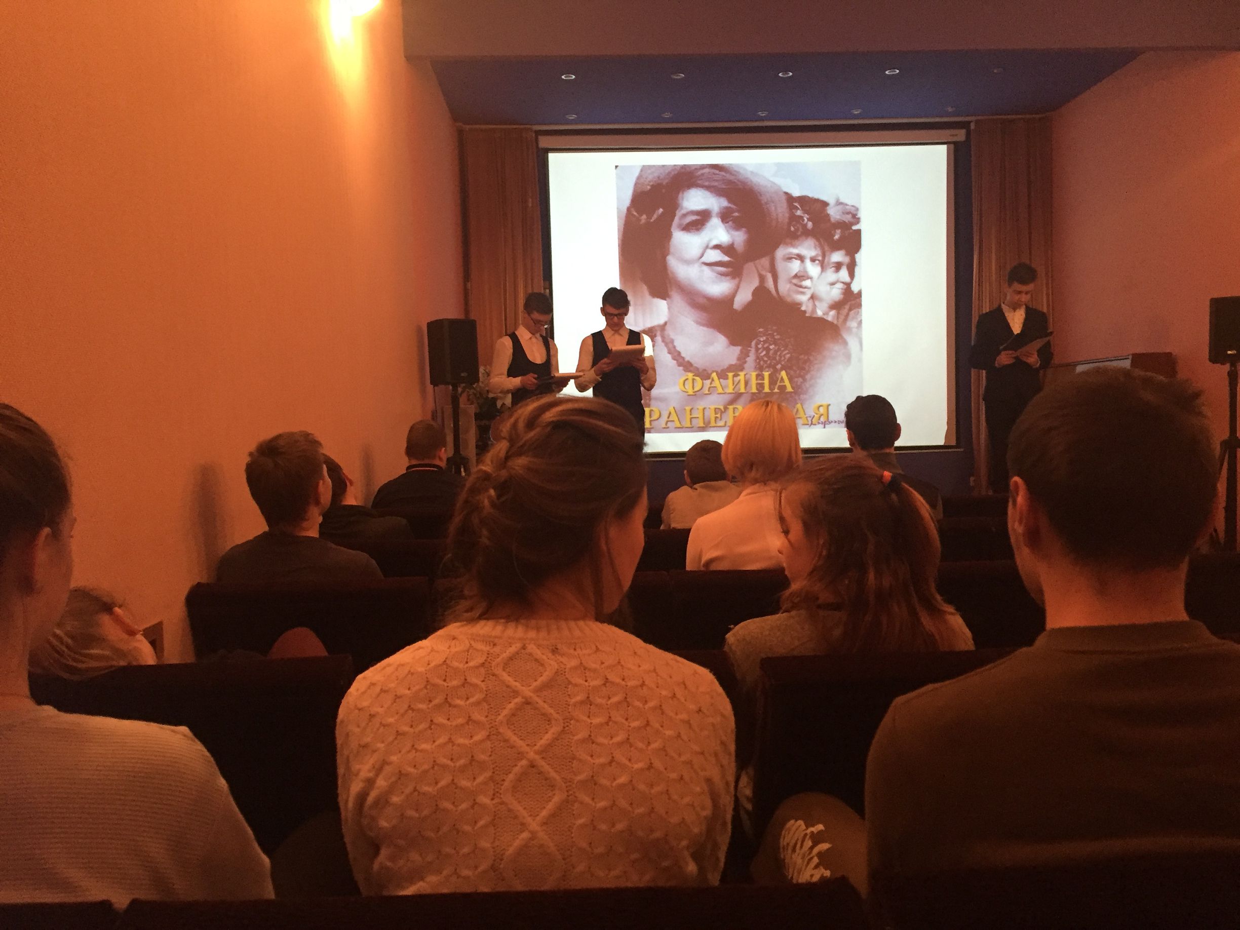 В этот день в малом зале Дома культуры прошла встреча со старшеклассниками города, которая была посвящена личности и творчеству Фаины Раневской.